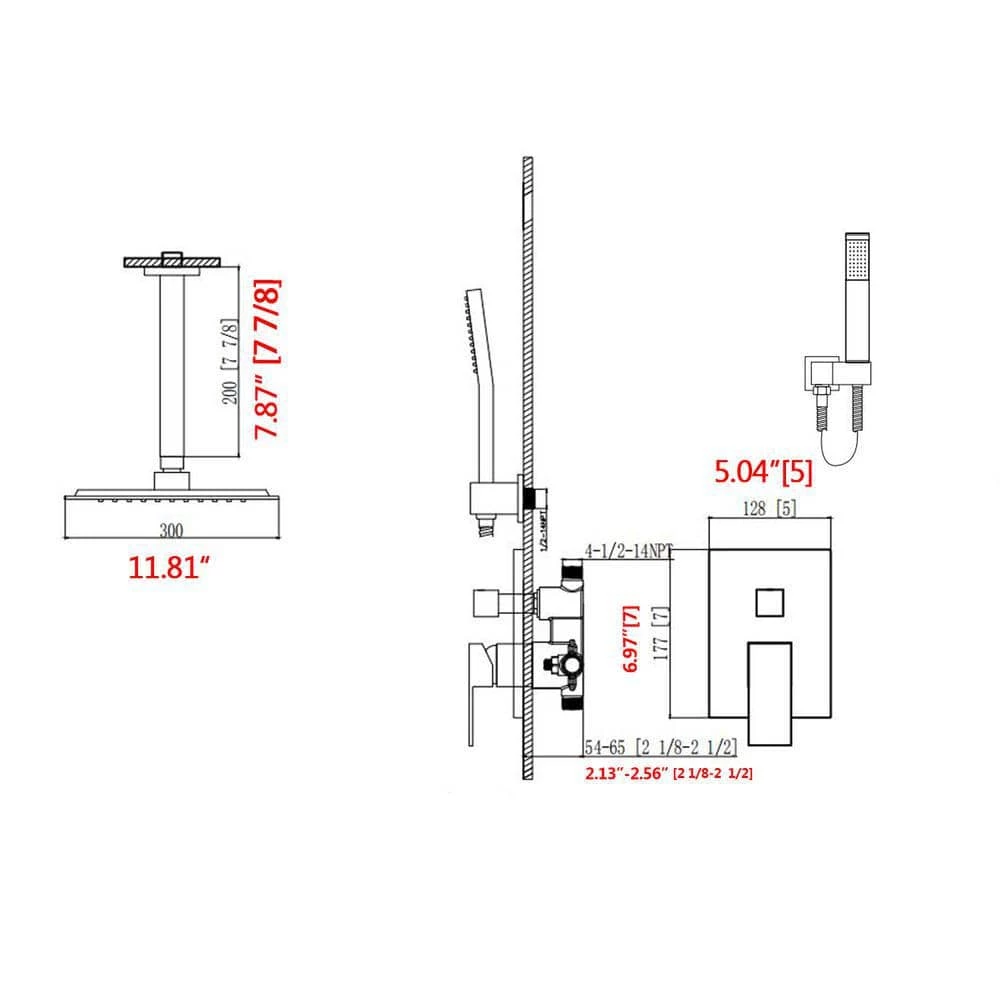 - 2.0 GPM hand-held shower head, 2.5 GPM large stainless steel square rainfall shower head good performance even in low water pressure installations