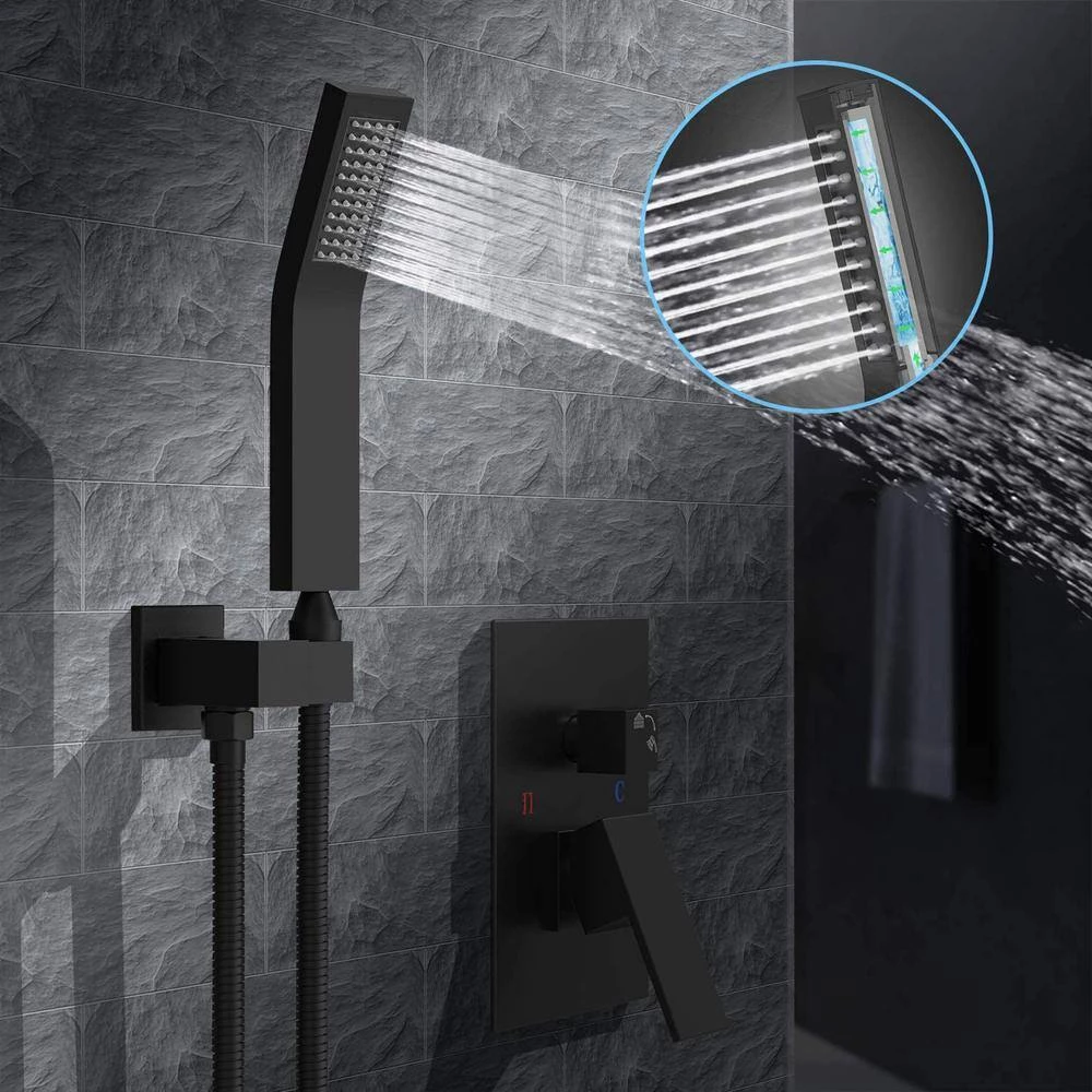 This shower system can solve the problem of sudden cold and hot caused by the imbalance of the hot water end pressure during the shower. With cUPC Certification pressure balanced valve protects you from any hurts of sudden water temperature change. The additional shut-off stop would help you adjust water flow and convenient maintenance. Single function handheld shower provides superior water pressure. Anti-corrosion, the multi-layered electroplating passing the salt spray test, this wall mount shower system provides high quality and comfortable shower to your family. Water diverted control for fully customization shower experience.