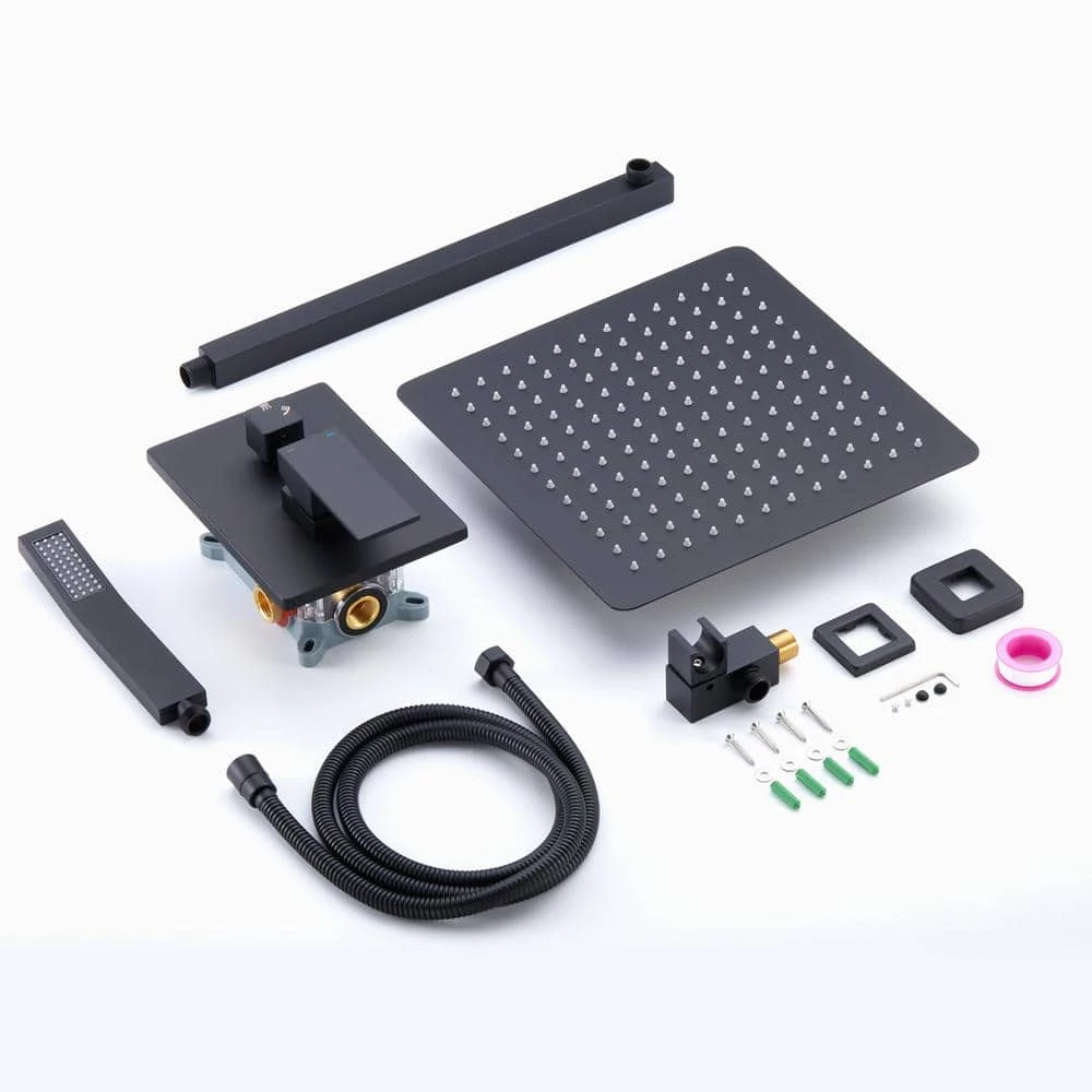 - Included components: shower arm, rain shower head, handheld shower head, shower valve faucet, shower bracket holder, shower hose