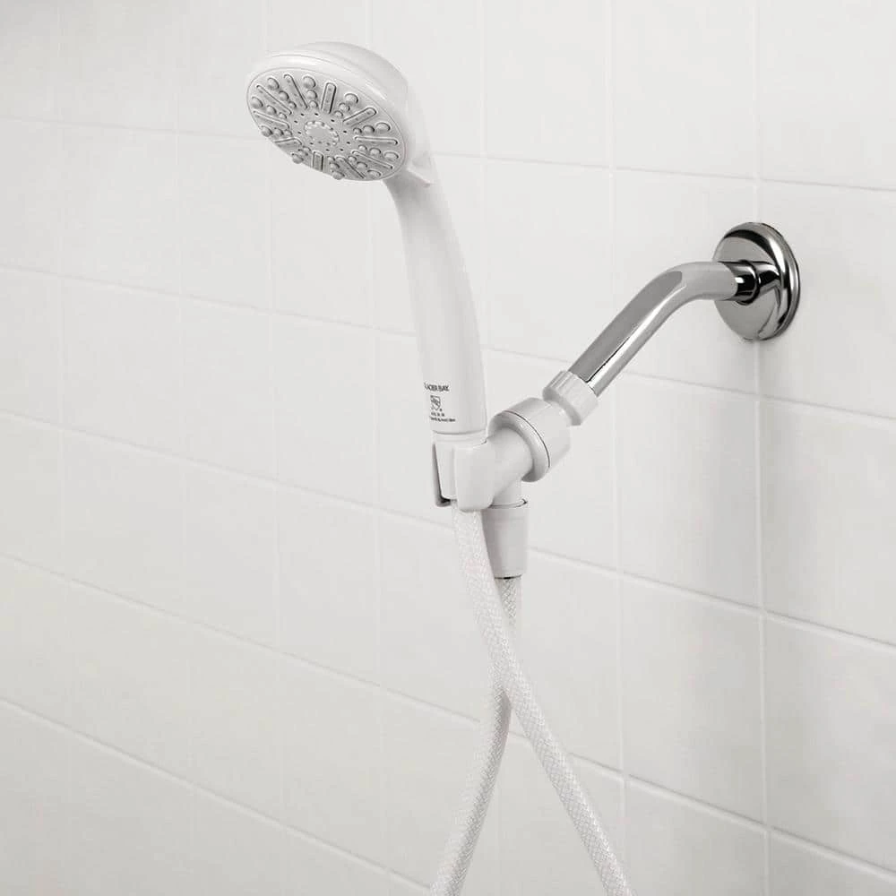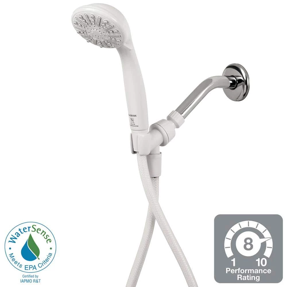 The Glacier Bay 3-Function Hand shower in White has a fresh look that will complement a wide variety of bathroom decor. Combining convenience with functionality, the 60 in. reinforced hose provides ample room for mobility, while the 3-spray setting allows you to customize water flow to your personal preference. With a 1.8 GPM flow rate, you are ensured steady water flow with plenty of cleaning power for a pleasurable shower experience. Pair with other pieces from Glacier Bay for a complete, polished look. Limited Lifetime Warranty. Easy installation, requires no tools.