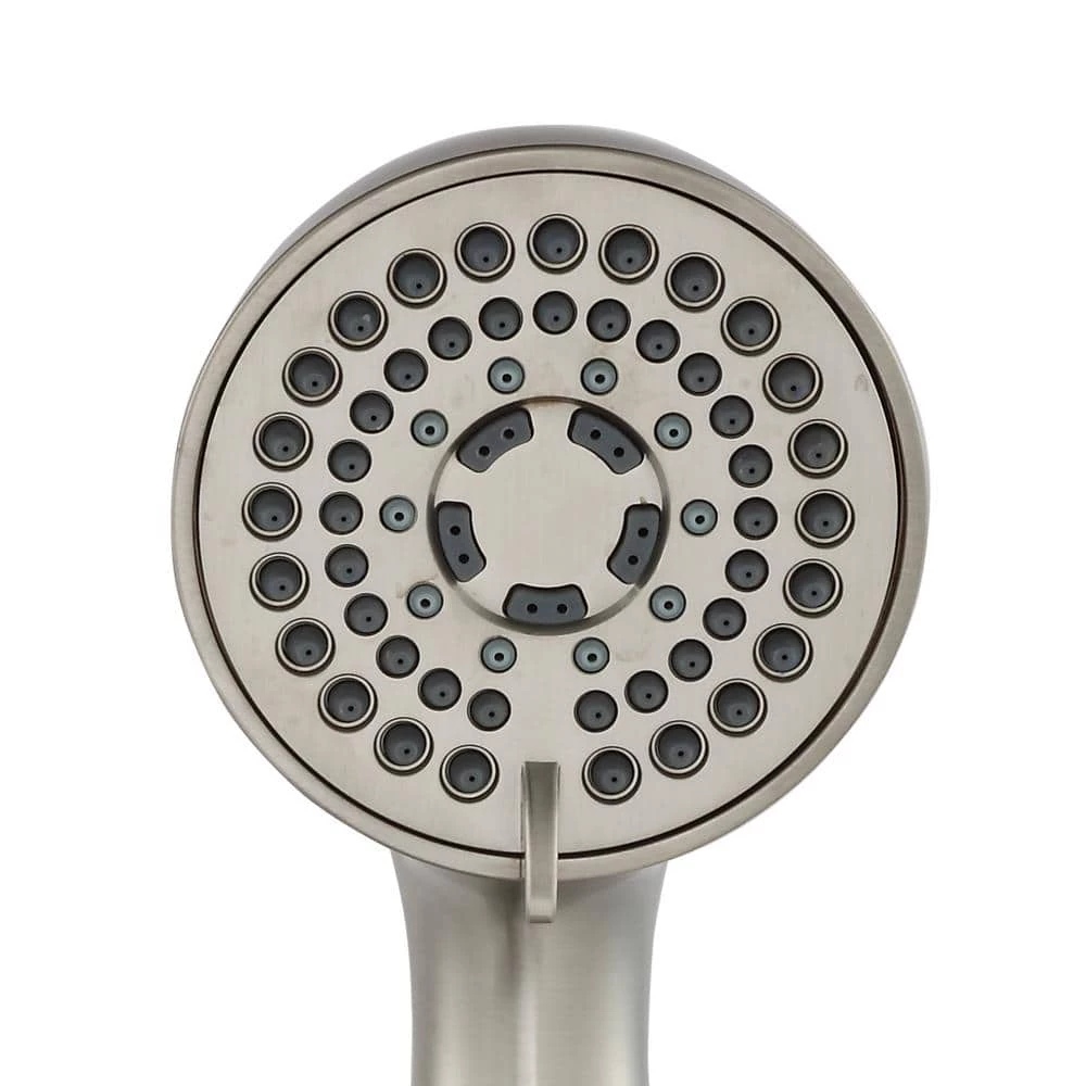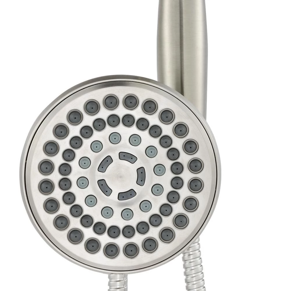 - One spray raincan shower head with 6-function handheld hand shower that features full spray, power spray, massage, combo full spray and power spray, combo full spray and massage, and pause