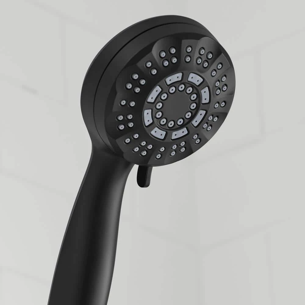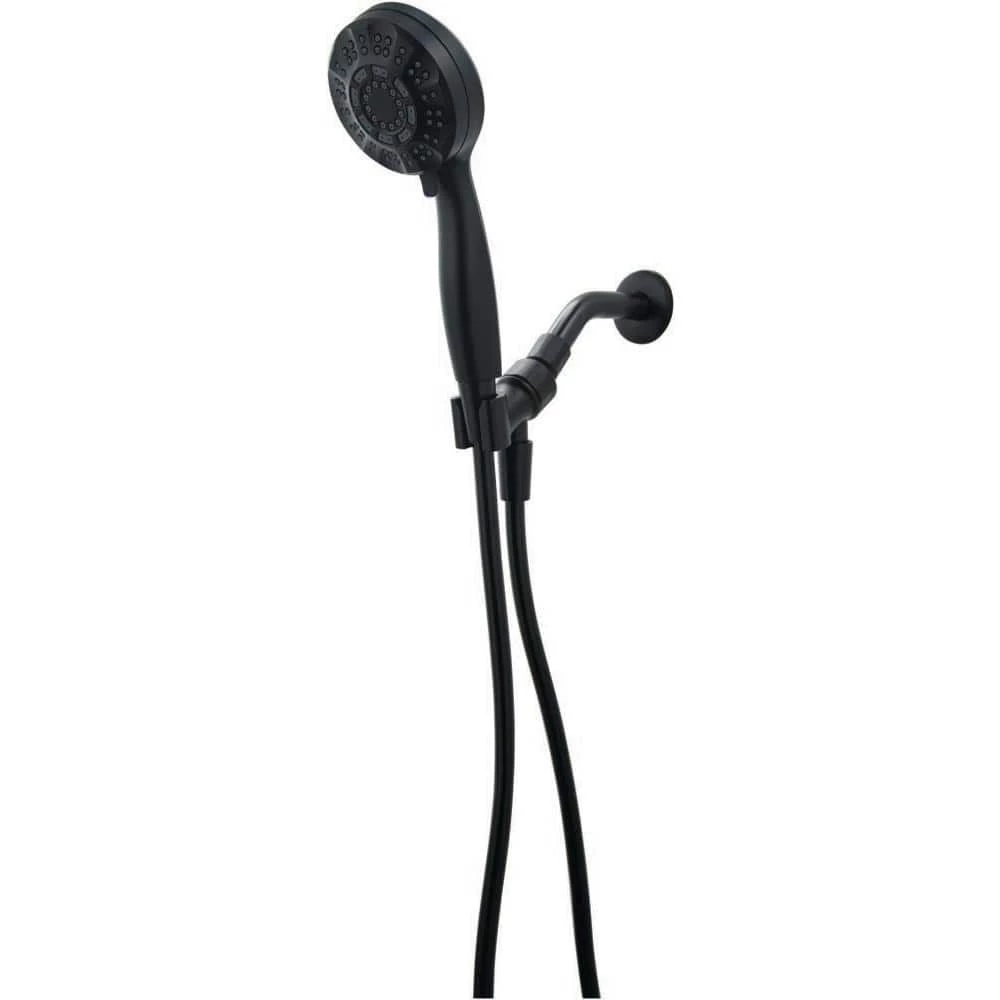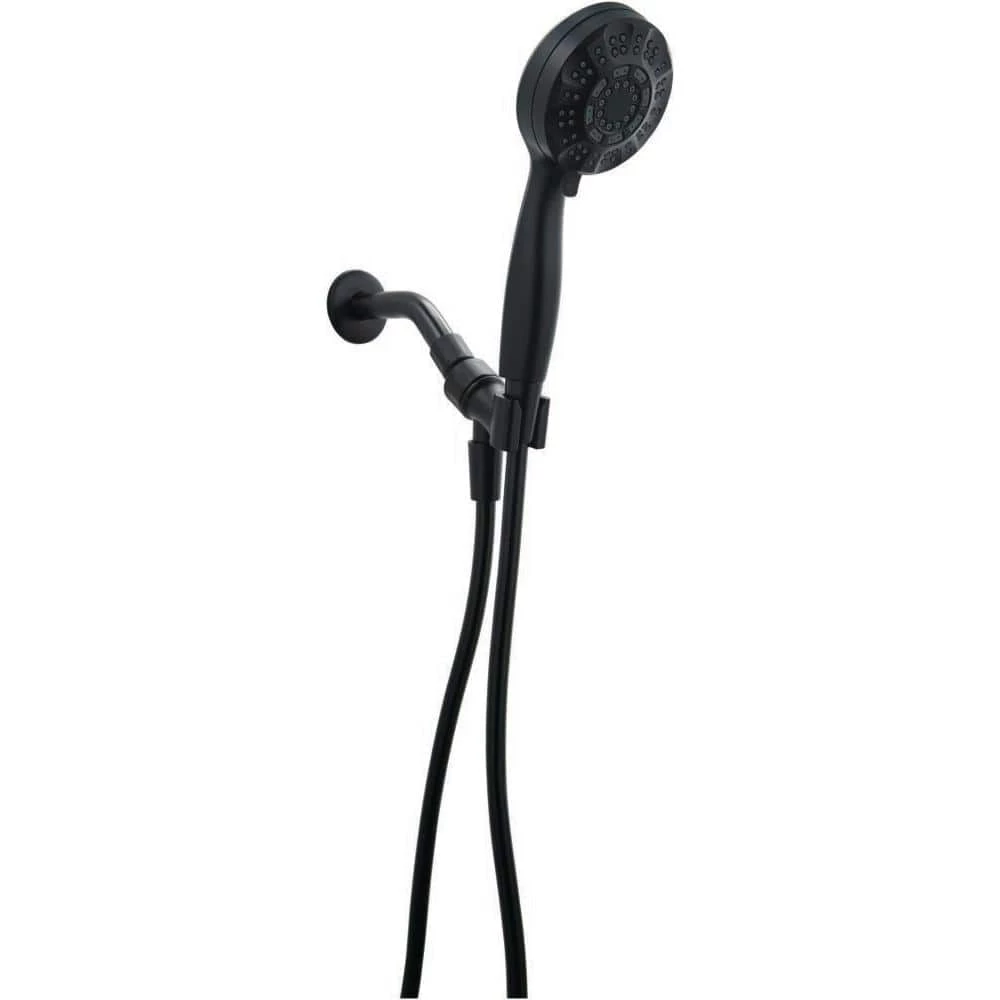 Wash the day away with this 6-Spray Handheld Showerhead Kit with Pause Feature in Matte Black. With 6 different settings, including a pause feature, this hand shower has you covered from top to bottom. Use the pause function to reduce the water to a trickle, allowing you to conserve water while doing such tasks as lathering up or shaving your legs. This handheld showerhead is WaterSense certified with a 1.8 GPM flow rate to conserve water without sacrificing performance. The rub-clean nozzles provide easy maintenance. The 60 in. PVC hose allows for comfortable movement.