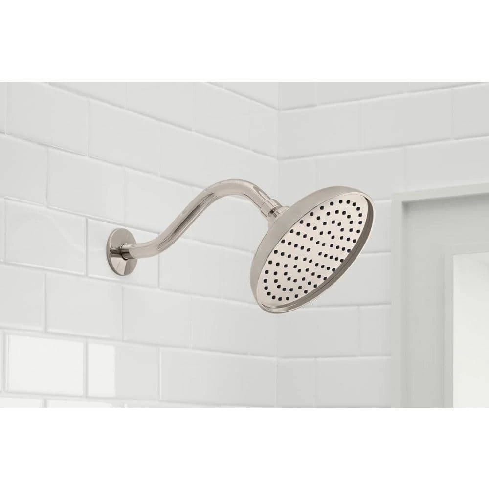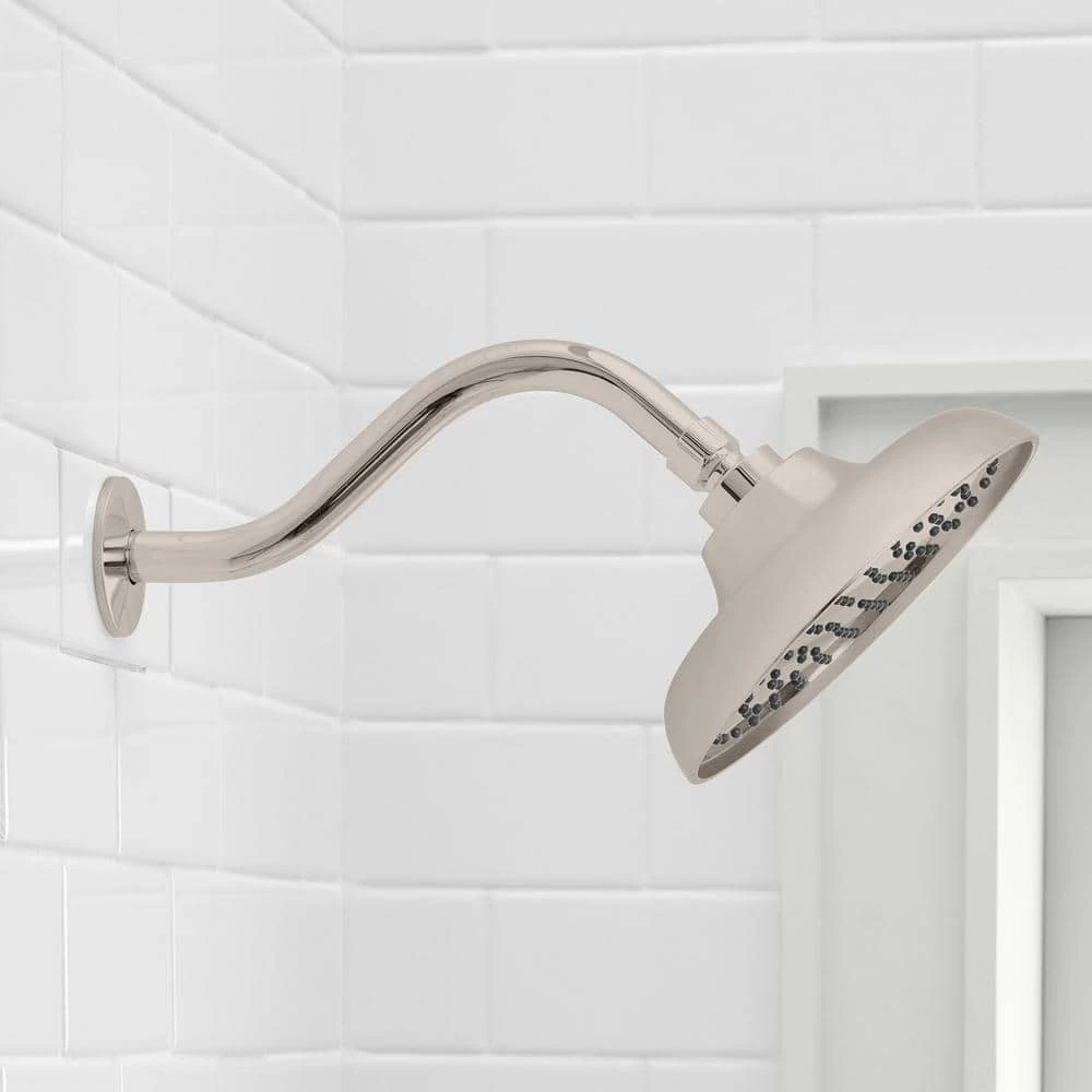 Change or update the look of your shower with this 9 in. Curved Shower Arm with Flange in Brushed Nickel. This shower arm is constructed with durable stainless steel. A simple way to add space, comfort and elegance to any standard bathtub.