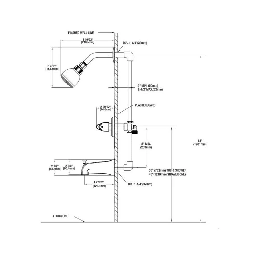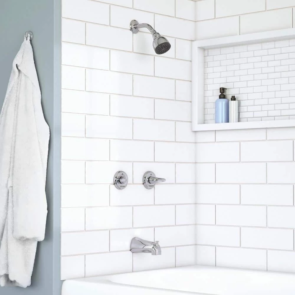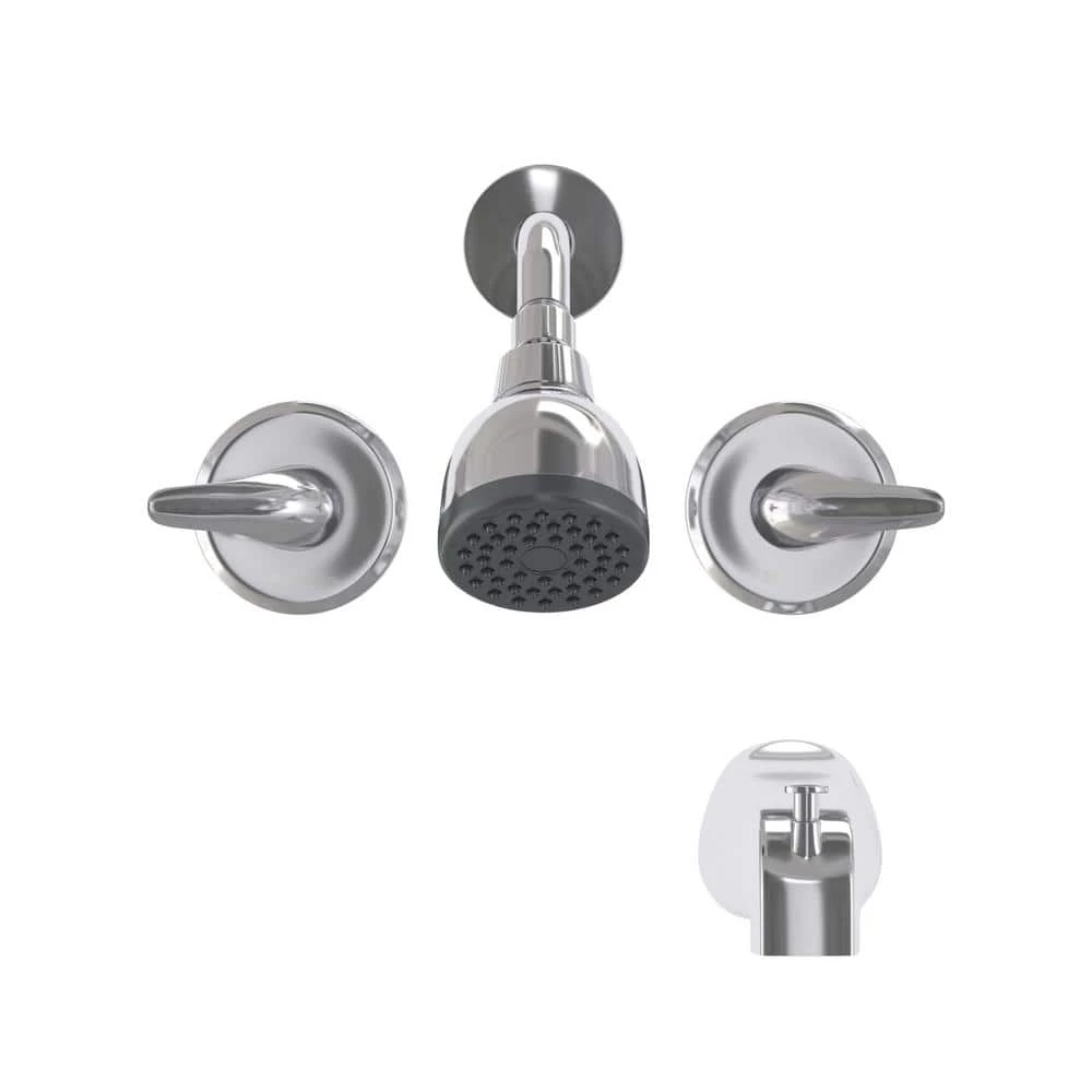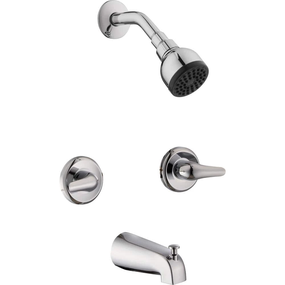 The Glacier Bay Aragon 2-handle 1-spray tub and shower faucet in chrome is practical and attractive and will complement a wide variety of bathroom decor. WaterSense certified, this faucet has a 1.8 GPM flow rate to help reduce water use and washerless cartridges for smooth operation and long life. The 2-handle lever handle design gives you convenient control over water flow and temperature, while the single function shower head is simple and easy to operate. Durable with an easy to clean chrome finish, this faucet is built to maintain a constant temperature for a safe and comfortable shower experience. Pair with other pieces from the Aragon Collection for a complete and polished look.