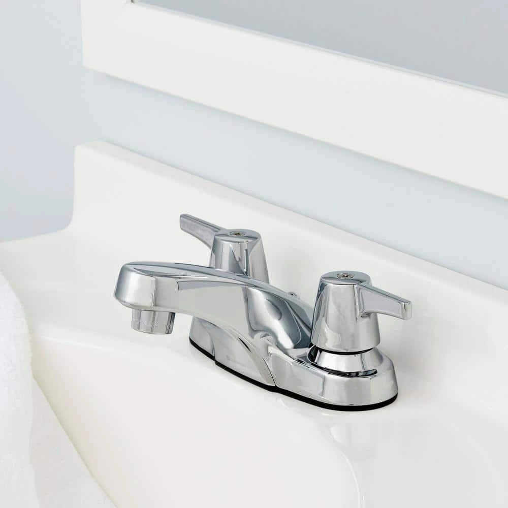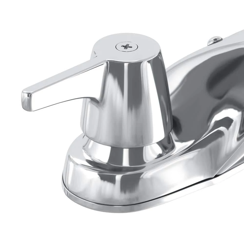 The Glacier Bay Aragon 2-Handle Bathroom Faucet less Pop-Up Drain features a sleek, easy-to-clean finish that complements a wide variety of bathroom decor styles. Designed for comfortable use with a 2-handle lever style and low-arc spout, this faucet is easy to install with the 1/2 in. connection and deck-plate mount. WaterSense certified with a 1.2 GPM flow rate to help reduce water use, this efficient faucet also features washerless cartridges to help prevent drips. Pair with other pieces from the Aragon collection for a complete and polished look throughout your bathroom.