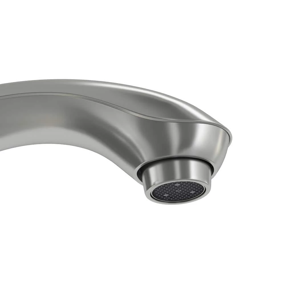 The Glacier Bay Builders 4 in. Centerset 2-Handle Low-Arc Bathroom Faucet in Brushed Nickel has a sleek and shapely, curved design that will complement a wide variety of bathroom decor. WaterSense certified, this faucet has a 1.2 GPM water flow rate to help conserve water and ceramic disc cartridges to help prevent drips. The 2-handle lever design allows you to easily turn hot and cold water on and off. Durable with a brushed nickel finish, this faucet is easy to clean and easy to install with a 1/2 in. connection size and deck-plate mount. it also features the Glacier Bay exclusive ClickInstall drain assembly for quick and simple installation. Pair with other pieces from the Builders Collection for a complete and polished look.