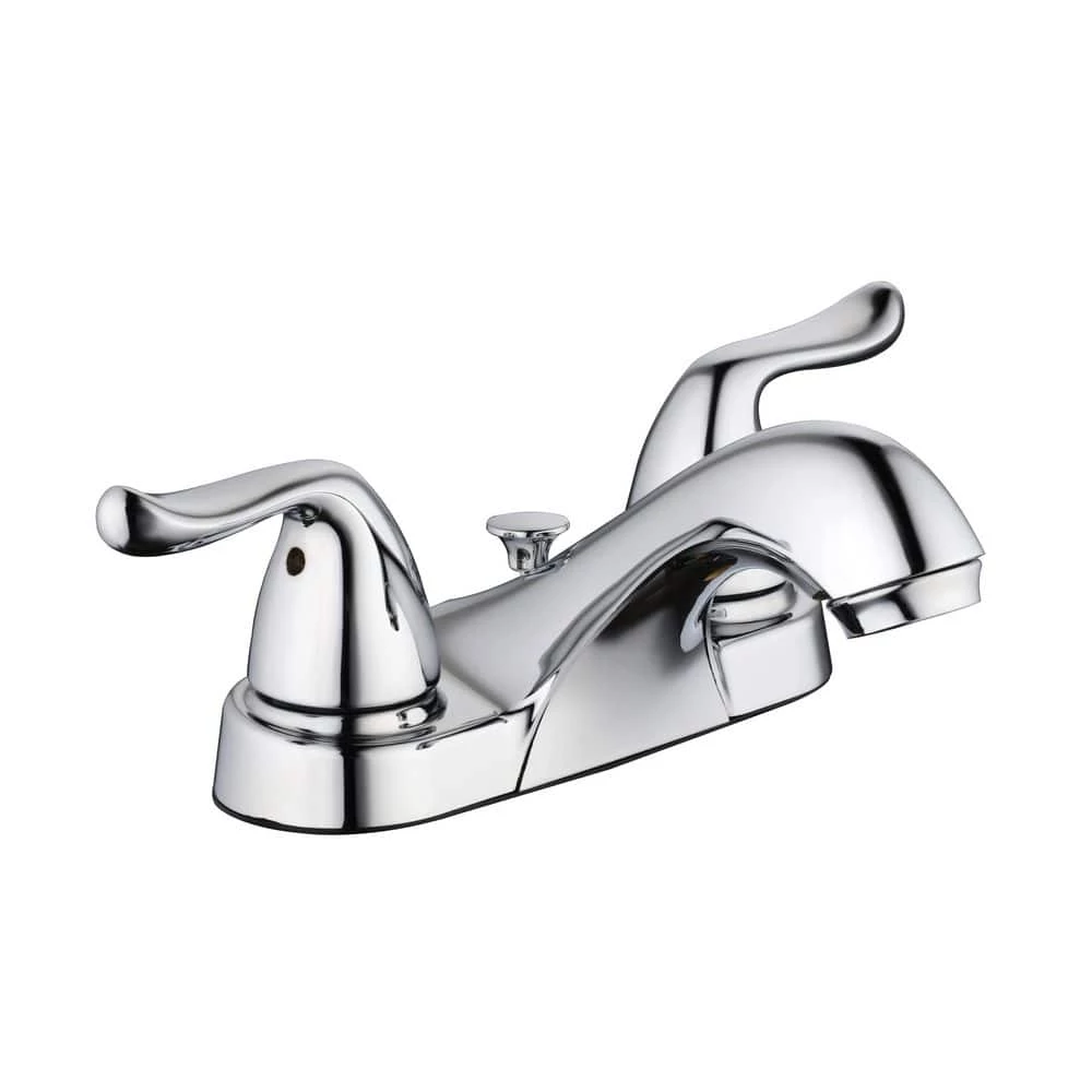 The Glacier Bay Constructor 4 in. 2-Handle Low-Arc Bathroom Faucet in Chrome has an elegant, curved design that will complement a wide variety of bathroom or powder room decor. WaterSense certified, this faucet has a 1.2 GPM rate to help reduce water use and washer less cartridges to prevent drips. Easy to use with easy control metal lever handles, the sleek low-arc spout allows plenty of sink space. This faucet features the Glacier Bay Exclusive ClickInstall drain assembly for quick and easy installation. Pair with other pieces from the Constructor Collection for a complete and polished look.
