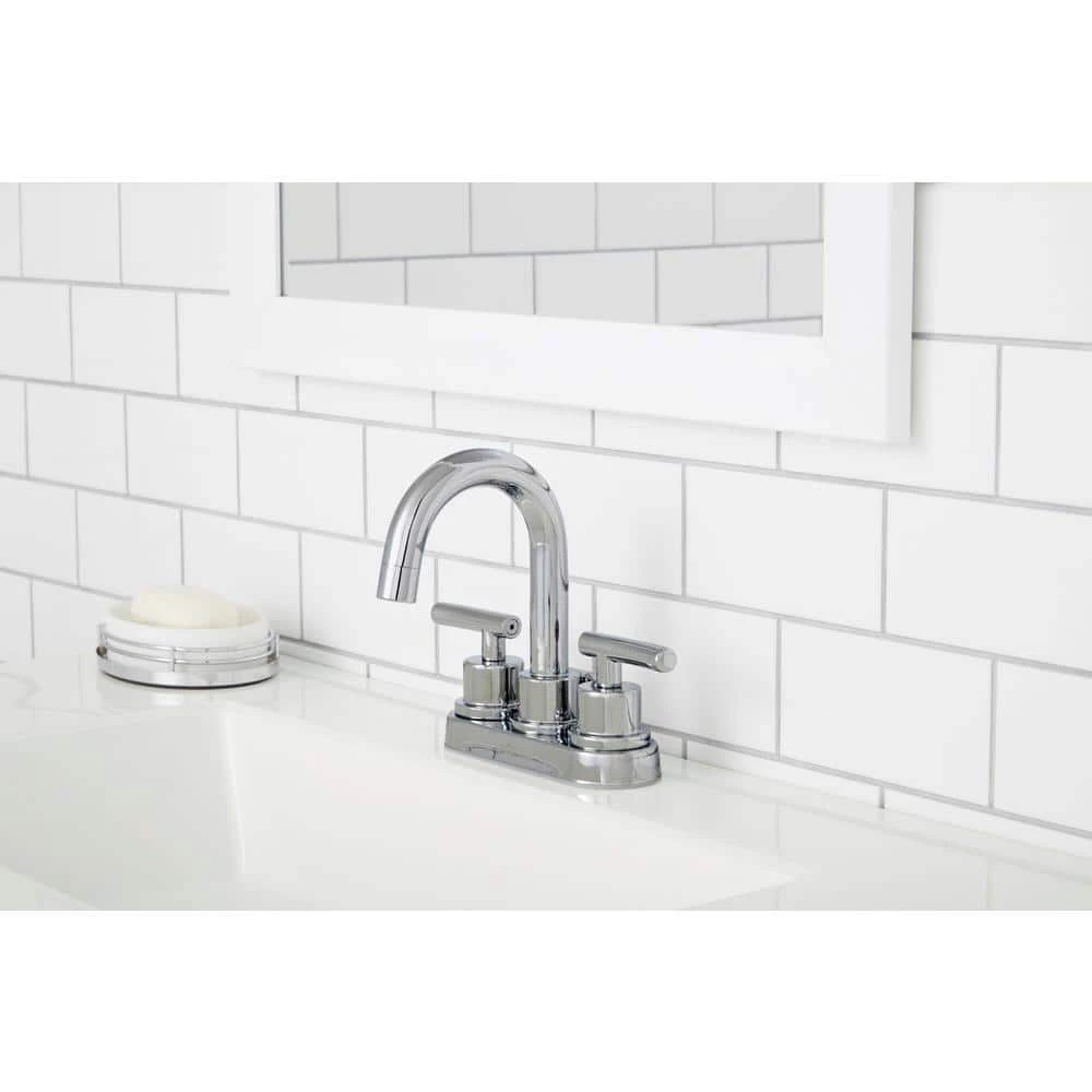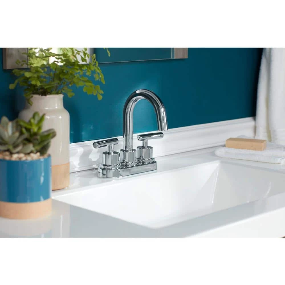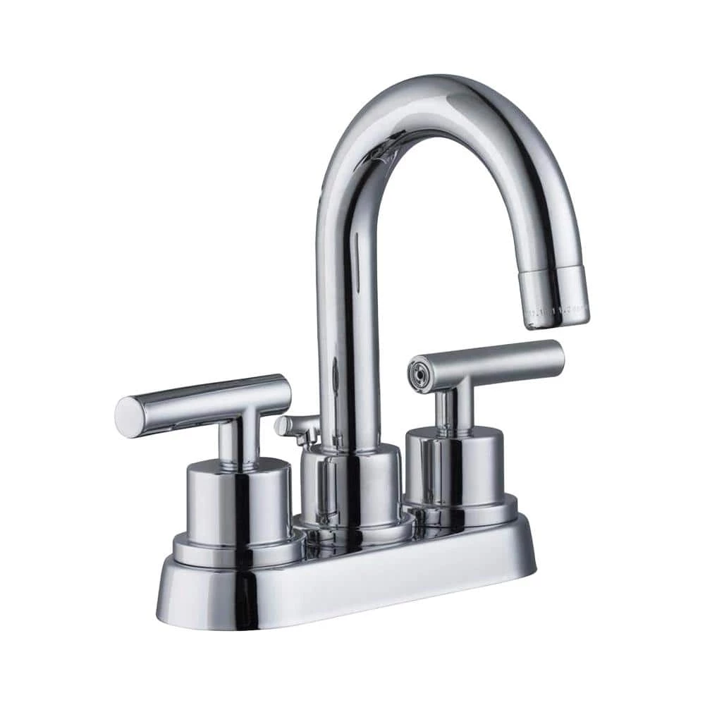 The Dorset 2-Handle High-Arc Bathroom Faucet in Chrome from Glacier Bay features a sleek and contemporary design that complements a wide variety of decor styles. WaterSense certified, this faucet has a 1.2 GPM water flow rate to help conserve water and ceramic disc cartridges to prevent drips. The 2-handle design and high-arc spout provide easy use and access, while the 1/2 in. connection size and deck-plate mount allow for easy installation. This faucet features the Glacier Bay exclusive ClickInstall drain assembly for quick and simple installation. Pair with other pieces from the Dorset collection for a complete and polished look throughout your bathroom.