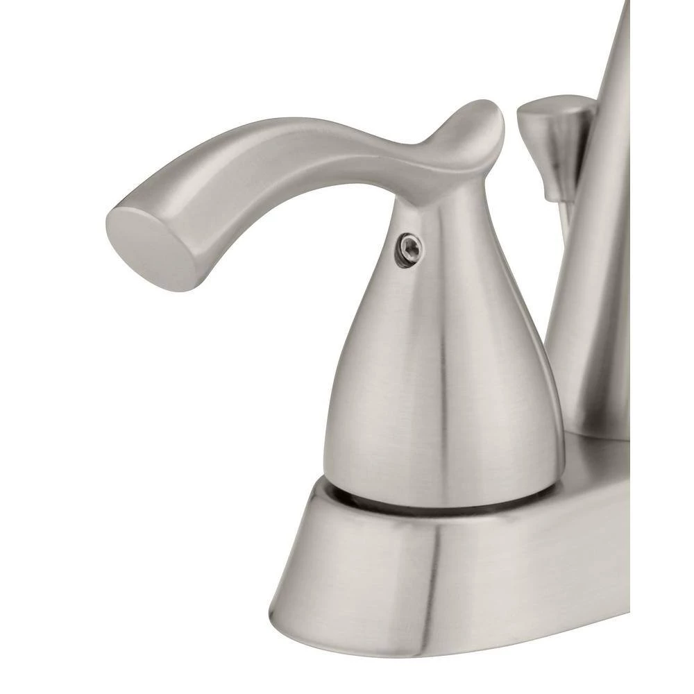 The Glacier Bay Edgewood 4 in. Centerset 2-Handle High Arc Bathroom Faucet in Brushed Nickel will give any bathroom a sophisticated and elegant look. WaterSense certified with a 1.2 GPM water flow rate to help reduce water use and ceramic disc cartridges to help prevent drips, this faucet meets and exceeds the highest standards of efficiency. The 2-handle design, high-arc spout and deck-plate mount make this faucet easy to use and easy to install, while the brushed nickel finish makes it easy to clean and enjoy. Featuring the Glacier Bay Exclusive ClickInstall drain assembly for quick and simple installation. Pair with other pieces from the Edgewood Collection for a complete and polished look.
