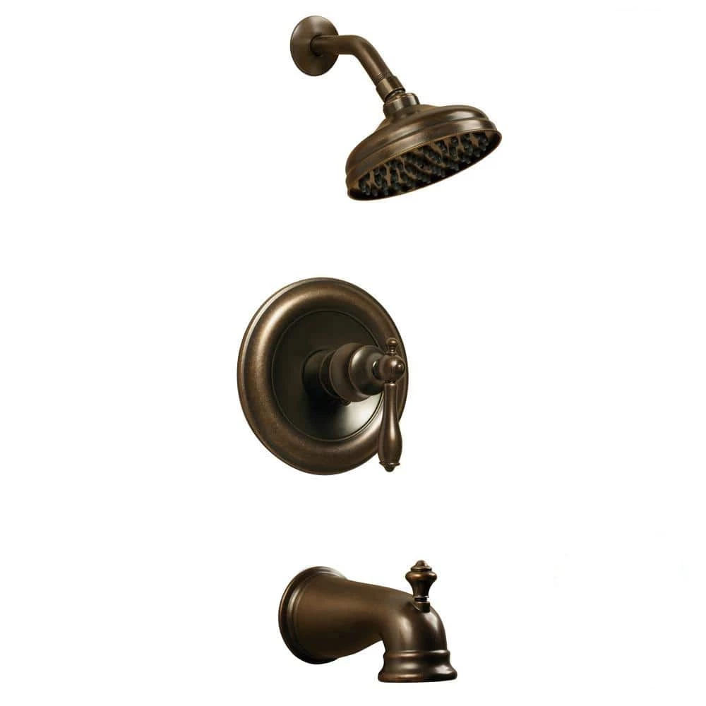 The elegant design of the Estates Single-Handle 1-Spray Tub and Shower Faucet in Heritage Bronze works with many bathroom decors. Each component of this tub and shower set is sculpted to highlight its beauty. Turn your home into an Estate with this decorative and high-quality single handle tub and shower set. Finished with a durable heritage bronze finish, this faucet is easy to use and maintains a constant temperature for safe and comfortable showering. Built-to-last with a solid brass valve body to ensure a long life. WaterSense certified with a 1.8 GPM flow rate and washerless valve for drip-free performance. Pair with other pieces in the Estates Collection for a beautiful cohesive look.