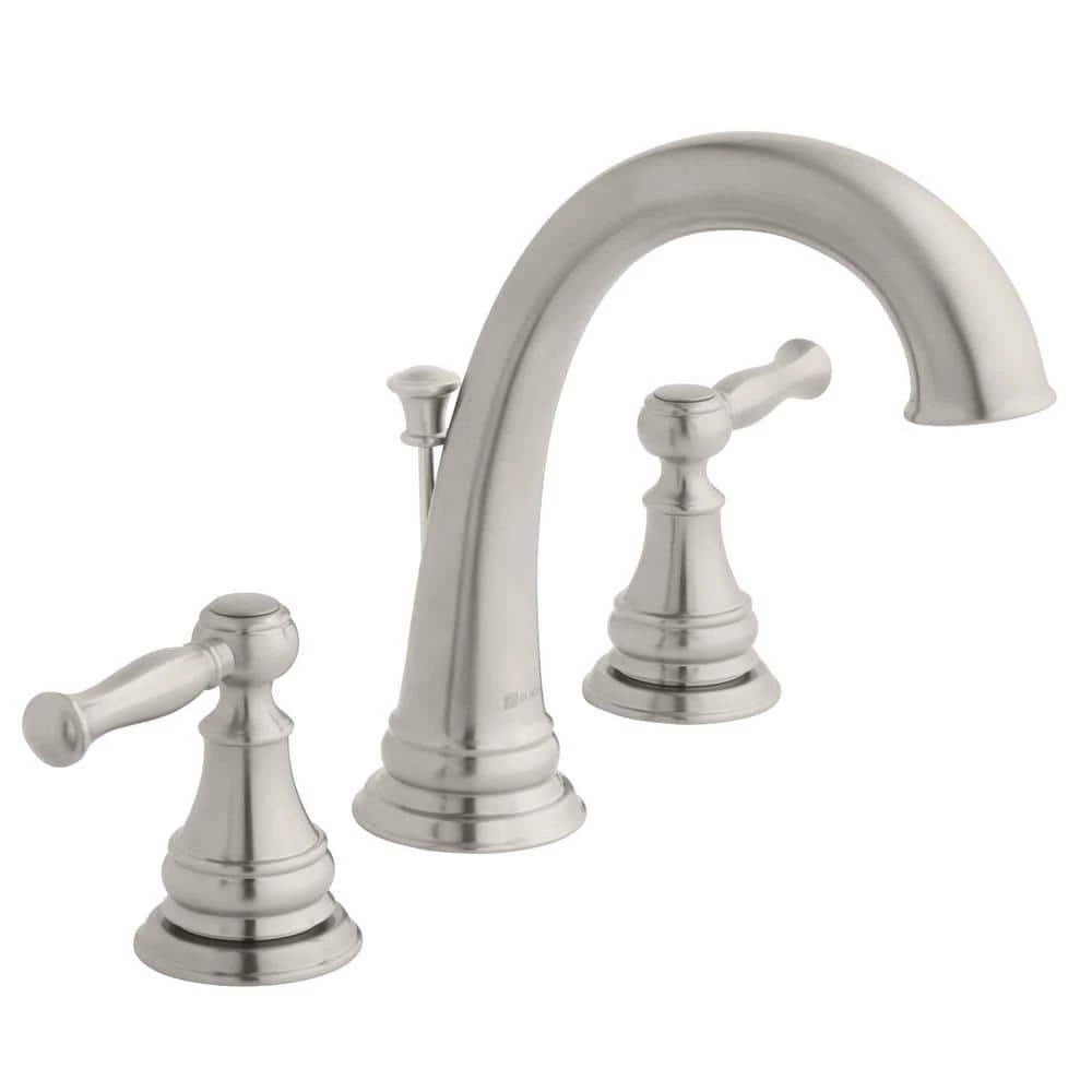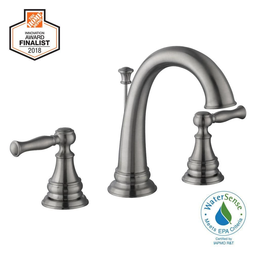 The Fairway 8 in. Widespread 2-Handle High Arc Bathroom Faucet from Glacier Bay exhibits a rich and distinctive look that complements a variety of bathroom decor styles. Featuring attractive lever handles, it includes an elegant high-arc spout to ensure plenty of sink space and easy sink access. With ceramic disc valves, a WaterSense certified design and a 1.2 GPM flow rate, the faucet conserves water in a sustainable, leak-free style. This Faucet features the Glacier Bay Exclusive ClickInstall drain for quick and simple installation. This built-to-last design pairs beautifully with other brushed nickel pieces from the Fairway collection for a stylish theme throughout your bathroom.