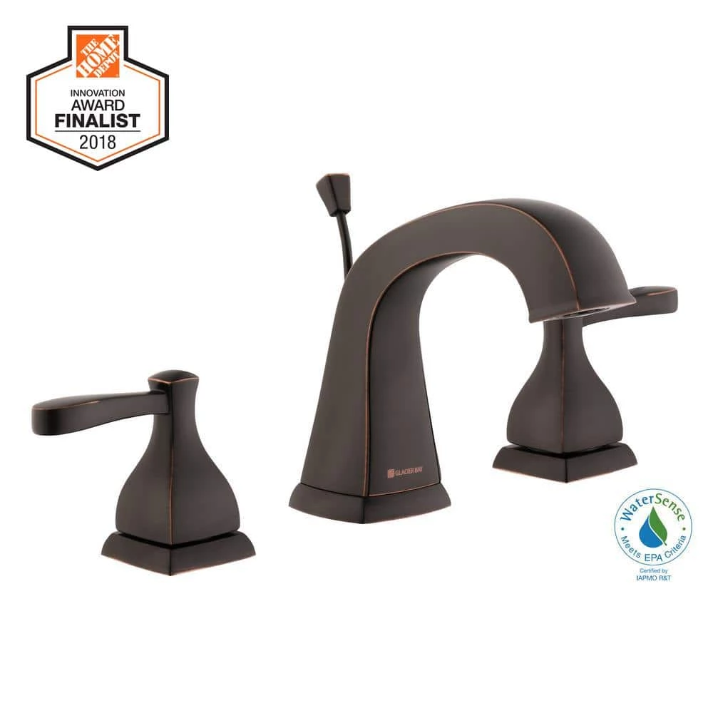 The Glacier Bay Milner 8 in. Widespread 2-Handle High-Arc Bathroom Faucet in Bronze is the perfect design to add that classic touch to your bathroom. Combining elegance with durability, the attractive bronze finish is sure to please. This faucet features a high-arc spout and ADA compliant lever handles. WaterSense certified, this efficient faucet features a 1.2 GPM flow rate to help reduce water use and ceramic disc valves to ensure drip-free performance. This faucet also includes the Glacier Bay exclusive ClickInstall drain assembly for quick and simple installation. Bring a touch of elegance to your bathroom with this beautiful faucet. Pair this faucet with other pieces in the Milner Collection for a complete look.