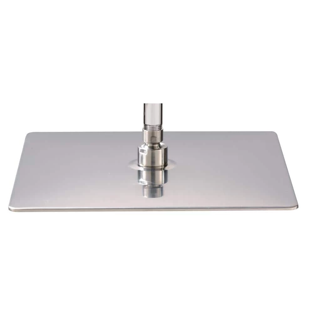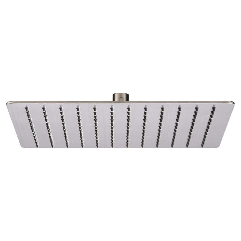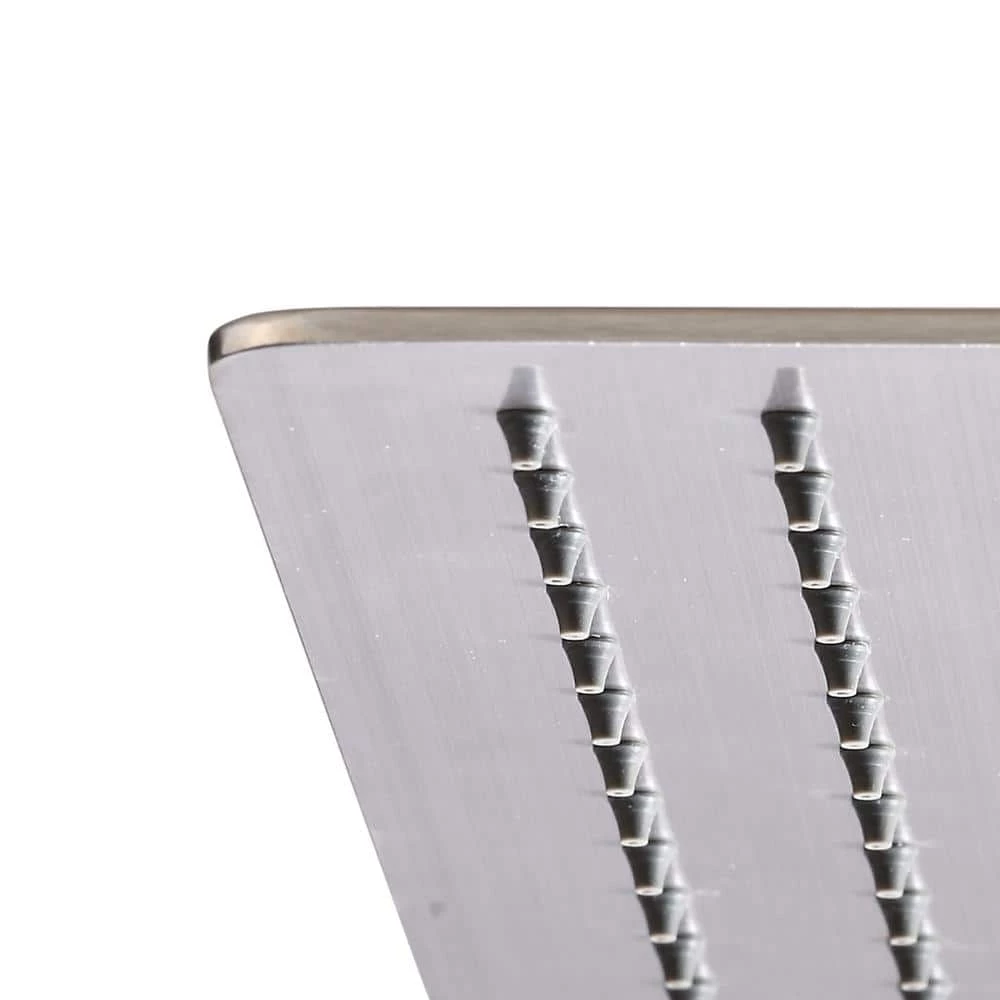 Glacier Bay 12 in. 1-Spray Square Showerhead in Brushed Nickel features a stainless steel showerhead that is built to last. It is big, sturdy and easy to maintain with rub-clean spray nozzles. The showerhead has a 2.5 GPM flow rate for a pleasurable shower experience. A limited lifetime warranty is included.