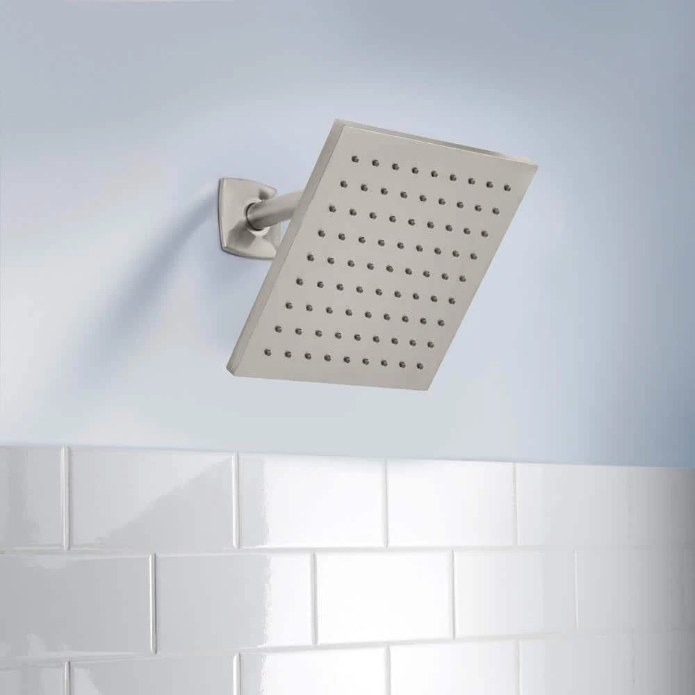The Glacier Bay 8 in. Single Spray Square Showerhead in Brushed Nickel is a simple way to update your bathroom decor. WaterSense certified with a 1.8 GPM flow rate for a pleasurable shower experience every time, this stainless steel showerhead is built to last and has a brushed nickel finish that is ideal for a wide range of decor. Big, sturdy, easy to install and easy to maintain with rub clean spray nozzles, coordinate with other brushed nickel pieces from Glacier Bay for a polished look you will enjoy for years to come.