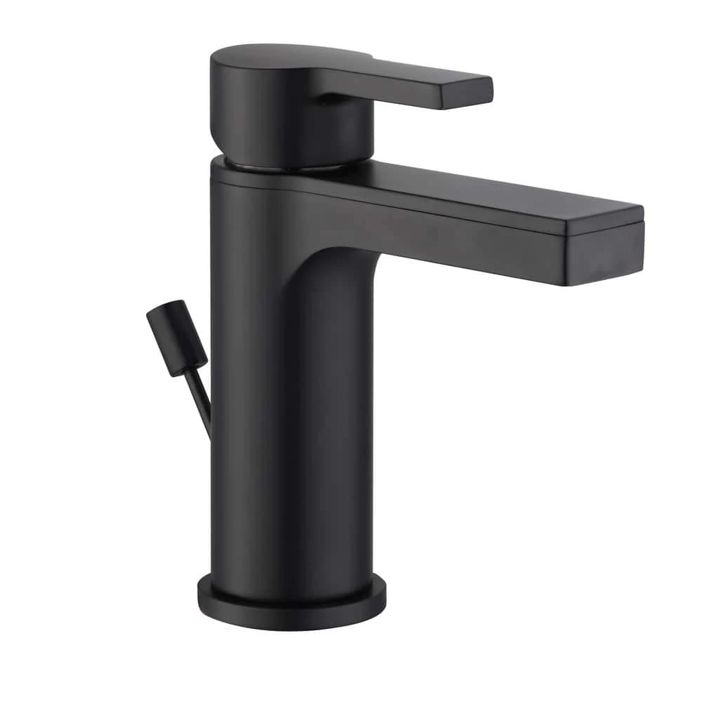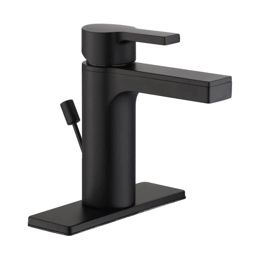 Modern Contemporary Centerset Single-Handle Low-Arc Faucet features sleek lines, contemporary styling and matte black finish. It is WaterSense certified with a 1.2 GPM flow rate and the ceramic disc valves ensure drip-free operation. The exclusive ClickInstall drain assembly makes for a quick installation.