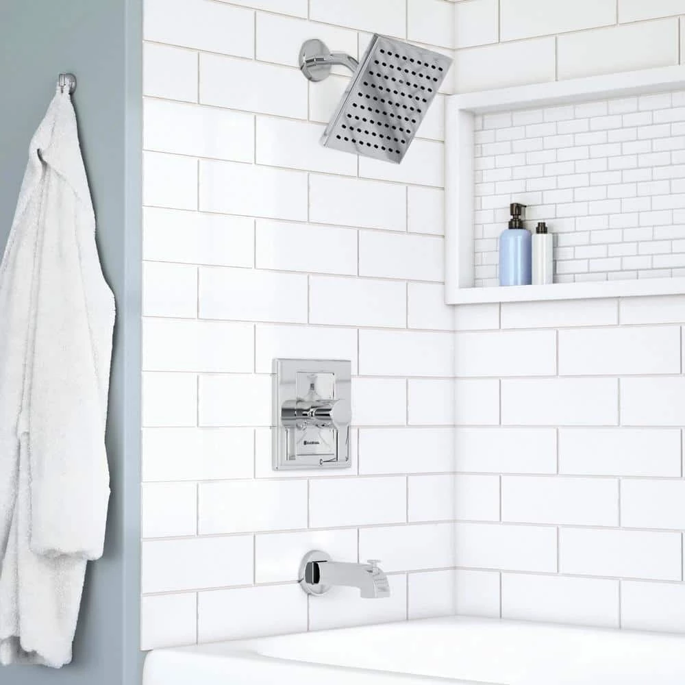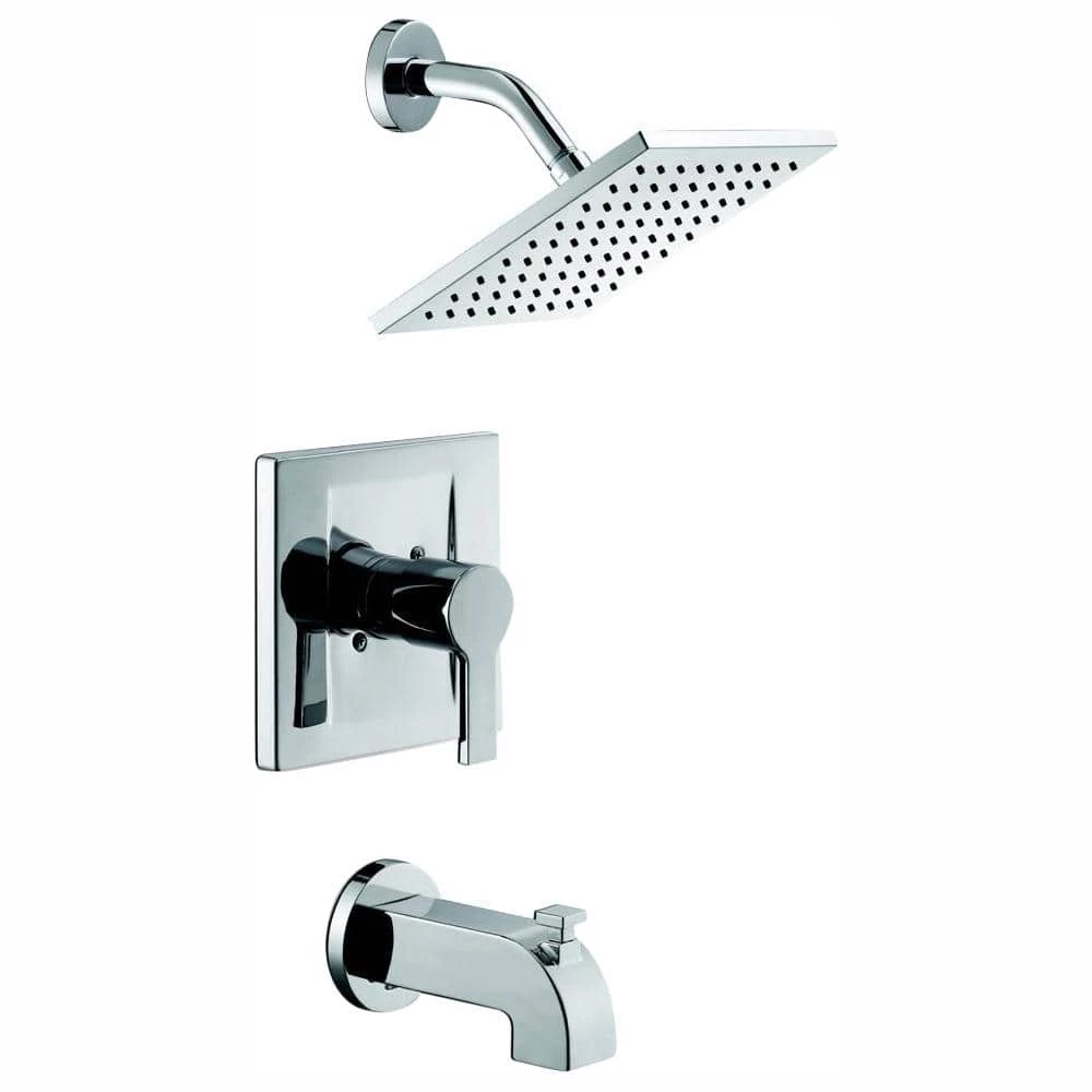 The Glacier Bay Modern Single-Handle Tub and Shower Faucet in Chrome provides a sleek and contemporary design at an affordable price. This unit includes the rough-in valve to provide a one-stop solution for your shower upgrade. WaterSense certified, this faucet has a 1.8 GPM flow rate to help reduce water use and a ceramic disc valve for smooth operation and long life. While the unit uses less water, the showerhead provides a superb showering experience. Featuring an 8 in. wide spray face, the showerhead provides an increased spray force and a wider spray pattern. The single-handle design gives you convenient, 1-handed control over water flow and temperature. This unit includes a pressure balancing system to ensure a comfortable and consistent showering experience.