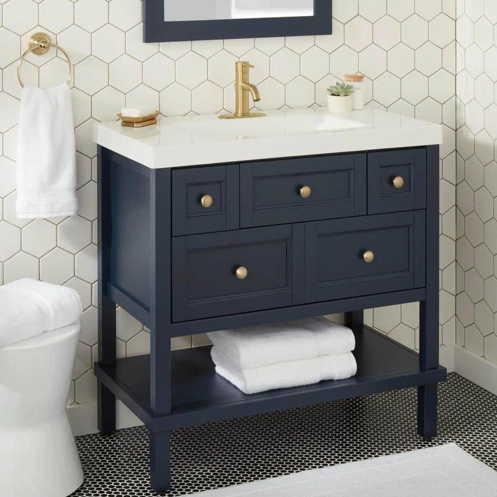 Enhance your bathroom interior with the Glacier Bay Modern Single-Hole Single-Handle Bathroom Faucet. A single-lever handle design makes operation easy, and the ceramic disc cartridge allows drip-free use. For a convenient installation, this faucet offers ClickInstall drain assembly. The matte gold finish creates a unique look.