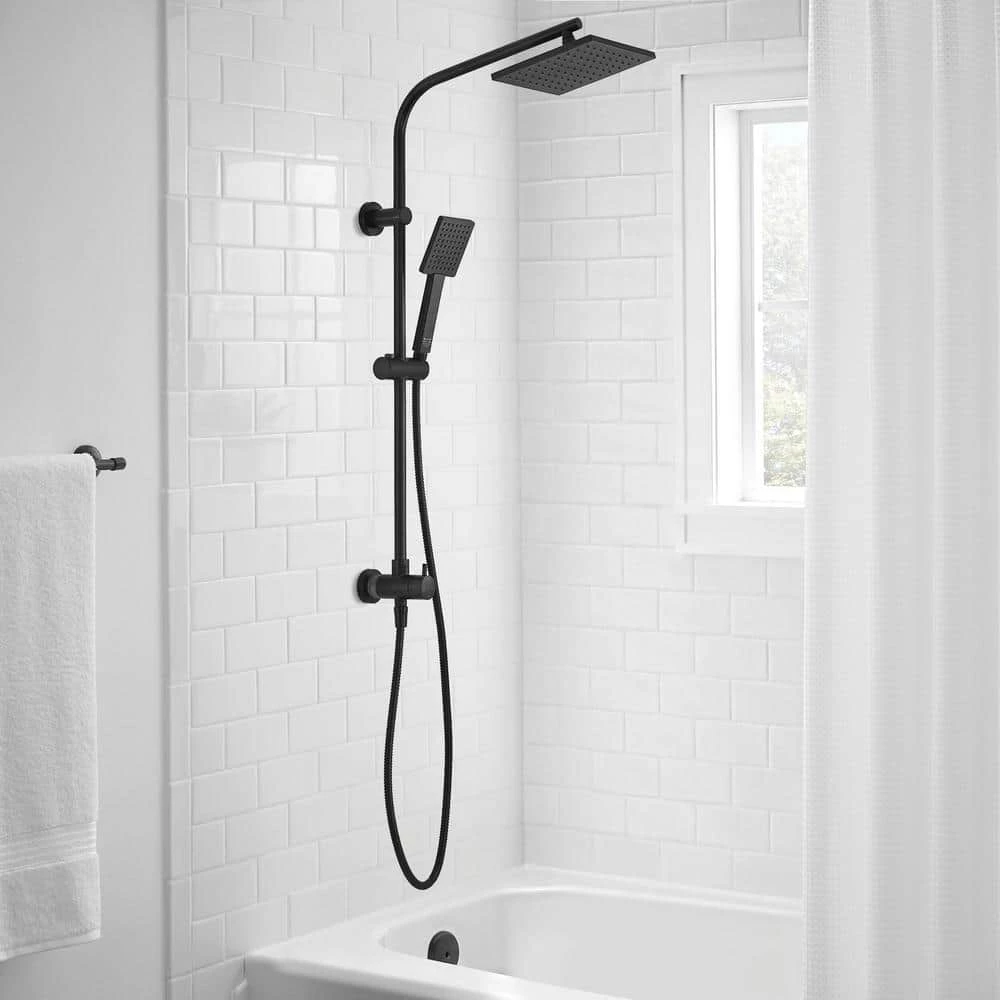 The Modern 1-Spray Wallbar Shower Kit with Handshower will refresh your shower with it’s unique design and stylish matte black finish. This eight in. square raincan showerhead features a 60 in. stainless steel hose that is highly flexible. It will also save water in your home while giving you a good water flow as it’s WaterSense certified with a 1.8 GPM rate. It is also easy to install yourself with three mounting options: screw, suction or adhesive.