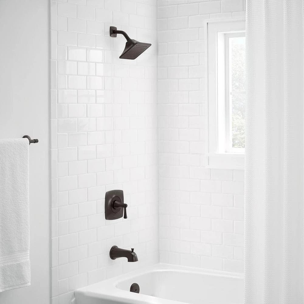 Striking and elegant, that is how to best describe this Glacier Bay Still More Single-Handle 1-Spray Tub and Shower Faucet in Bronze. This unit includes the rough-in valve to provide a one stop solution for your shower upgrade. WaterSense certified, this faucet has a 1.8 GPM flow rate to help reduce water use and a ceramic disc valve for smooth operation and long life. While the unit uses less water, the showerhead provides a superb showering experience. The single-handle design gives you convenient, 1-handed control over water flow and temperature. This unit includes a pressure balancing system to ensure a comfortable and consistent showering experience.