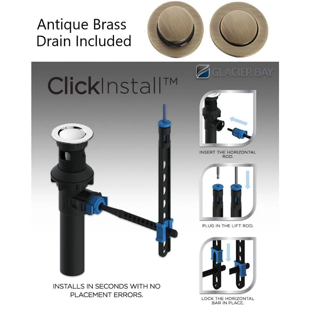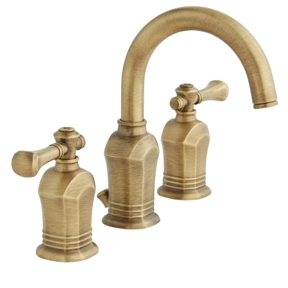 Sharp and sleek with a vintage inspired design, the Glacier Bay Verdanza 8 in. Widespread 2-Handle High-Arc Bathroom Faucet in Antique Brass is ideal for a wide variety of bath or powder room decor. WaterSense certified with a 1.2 GPM flow rate for water efficiency, this faucet’s ceramic disc valves ensure drip-free operation and ease of use, while the high-arc spout provides plenty of clearance. This faucet features the Glacier Bay exclusive ClickInstall drain assembly for quick and simple installation.