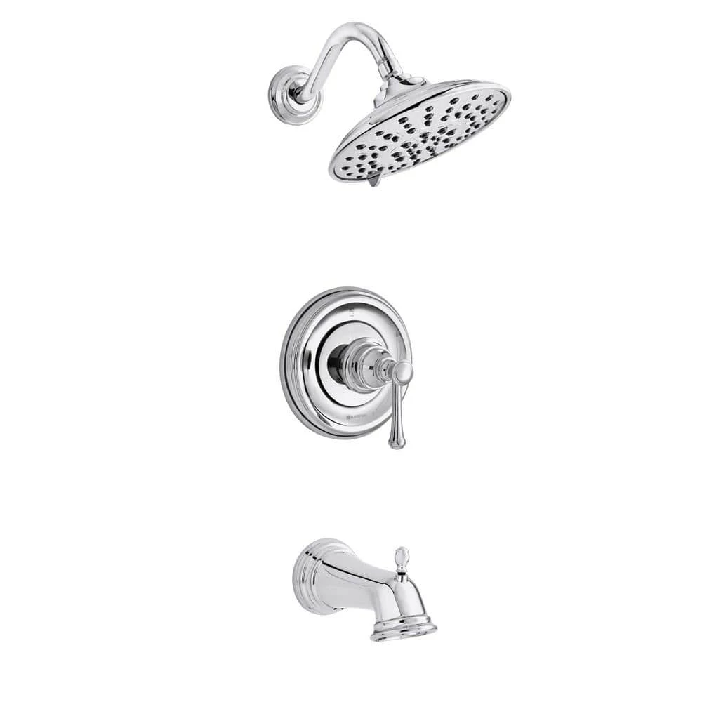 The Glacier Bay Warnick Single-Handle 1-Spray Tub and Shower Faucet in Chrome offers style and functionality combined for an updated look for your bathroom. This unit includes the rough-in valve to provide a one stop solution for your shower upgrade. WaterSense certified, this faucet has a 1.8 GPM flow rate to help reduce water use and a ceramic disc valve for smooth operation and long life. While the unit uses less water, the showerhead provides a superb showering experience. The single-handle design gives you convenient, 1-handed control over water flow and temperature. This unit includes a pressure balancing system to ensure a comfortable and consistent showering experience. Pair with other pieces in the Warnick Collection for a complete and polished look for your bathroom.