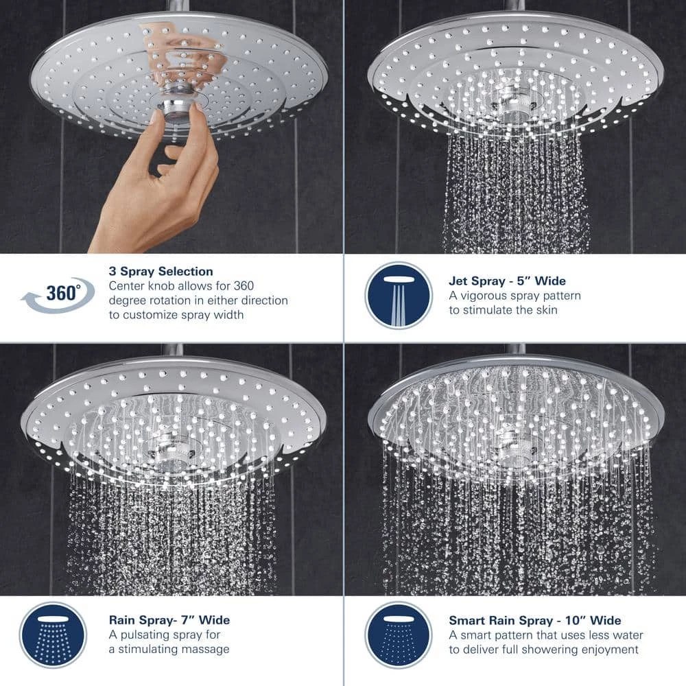 Enjoy the relaxing Rain Spray sensation on your skin. This soft and delicate spray pattern reminiscent of warm summer rain will soothe your body and mind, washing away any tension and stress. SmartRain provides a balanced and soft water flow to refresh your skin. Indulge in the sensation of a warm summer rain and the reassuring knowledge that meanwhile, you are actually conserving precious natural resources. Our intelligent SmartRain technology comes with all the benefits of our original Rain spray, but with a reduced flow rate, allowing you to save water without compromising on your showering comfort. The perfect combination: whenever you’re in need of a fresh burst of energy, our dynamic Jet Spray provides a pleasant revitalizing sensation on your skin. And after your shower, the powerful water jet will easily clean your shower or tub. The GROHE DreamSpray technology turns your daily shower into a luxuriously relaxing experience. The advanced engineering of the shower head ensures a balanced flow of water from all nozzles, whatever spray pattern you choose. GROHE EcoJoy provides all the comfort you would expect of a GROHE shower while reducing your water consumption by up to 40%. This water-saving technology not only has a positive environmental impact, but will help to reduce your household bill, too.