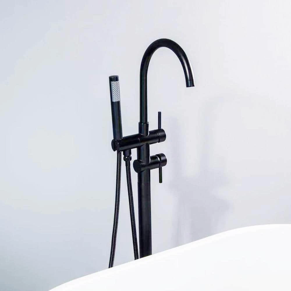 - 1-piece freestanding claw foot tub faucet with hand shower in matte black finish