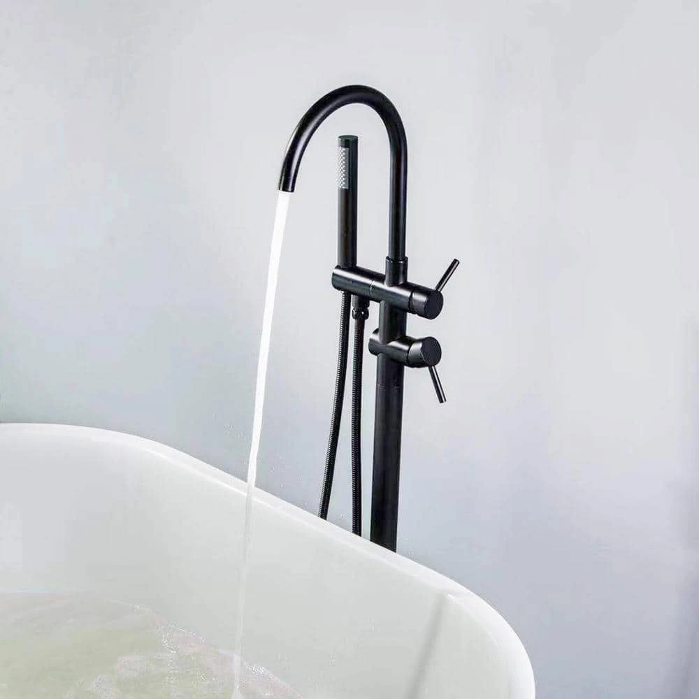 This elegant minimalistic freestanding faucet is what you are looking for to match your beautifully remodeled bathroom. Featuring durable ceramic cartridge, solid 304 stainless steel construction, crafted tubular handheld showerhead, temperature control knob. Easy to install floor mounting with long flexible inlet hoses and trim plates.