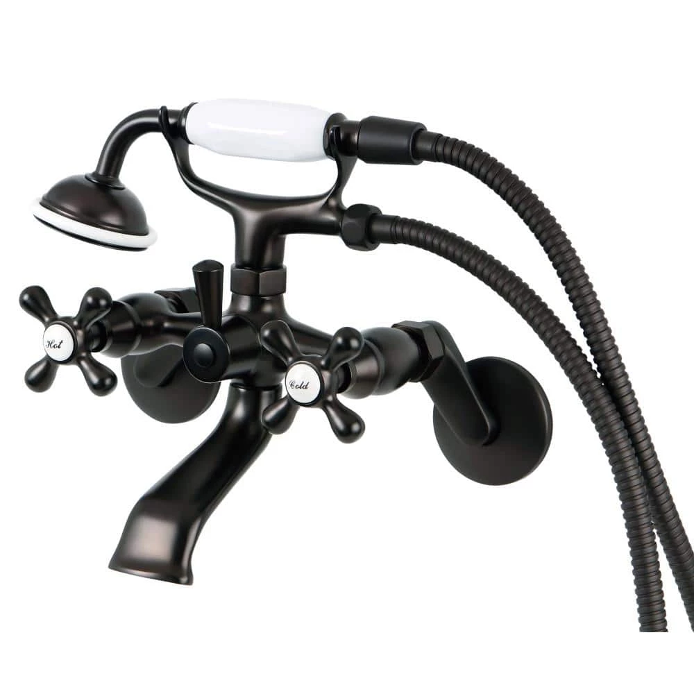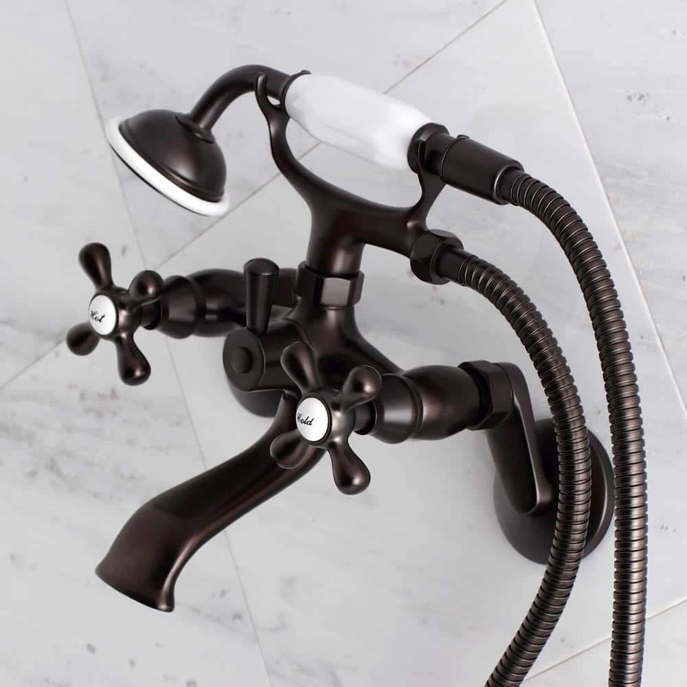 Bring a modern style with a nostalgic feel to your claw foot tub. Featuring an elegant wide spout, this faucet will look great in any bathtub. Solid brass construction for durability and reliability and a hand held shower.