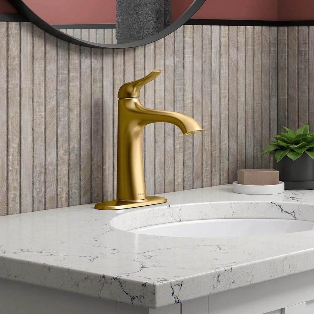 Inspired by the gentle flow of water, the Easmor single-handle bathroom sink faucet will bring a sense of calm to any space. The Easmor bathroom sink faucet has a transitional style with a soft, pebble-inspired handle that complements its fluid form and allows for smooth operation, while the ceramic disc valve offers a leak-free and drip-free experience. It also comes with a Lifetime Limited Warranty.