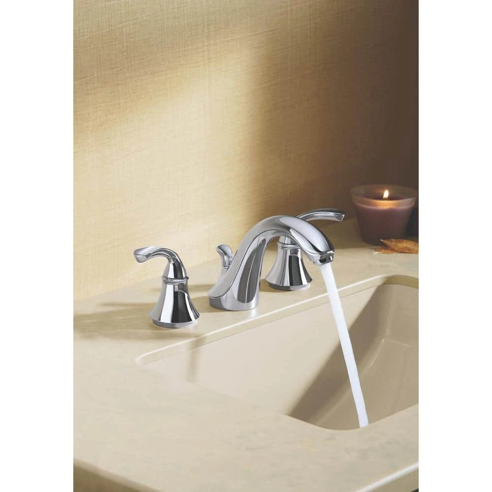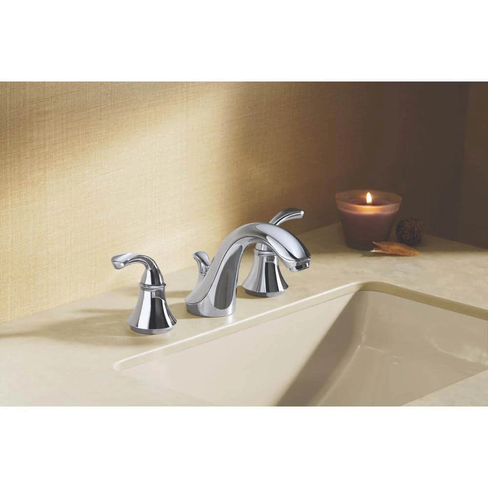 With their stylish sculpted silhouettes, Forte faucets complement both classic and contemporary decor. This Forte sink faucet has a sleek, arching spout, 2 traditional-style ergonomic lever handles, and easy-to-clean and leak-free Ultra Glide valves for complete water control. The spout also features an aerator, ensuring smooth and splash-free water flow. A metal pop-up drain and 1-1/4 in. tailpiece complete the set.