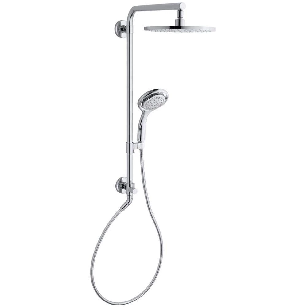 - Diverter at the base of the column makes for easy toggling between hand shower and rain head