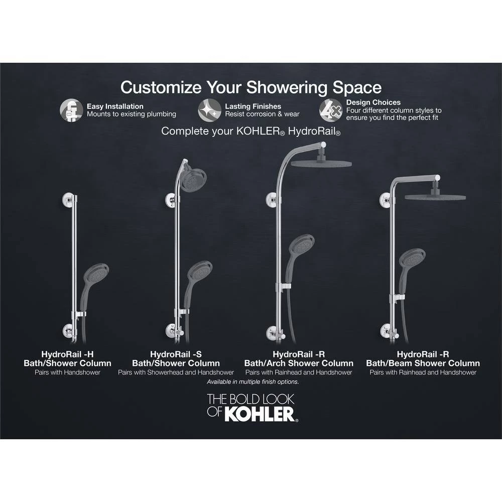 HydroRail-R allows you to easily upgrade a standard shower to a spa-like showering experience with luxurious overhead rain and hand shower functionality. It’s designed to accommodate a wide array of bath/shower configurations without altering in-wall plumbing, making it suitable for both remodels and new construction. This bath/shower column converts your single-outlet showerhead into a two-outlet custom showering experience, and has a slide bar bracket for easy height and angle adjustments to your hand shower. For smooth toggling between hand shower and rain head functions, this column features a diverter conveniently located at the base.