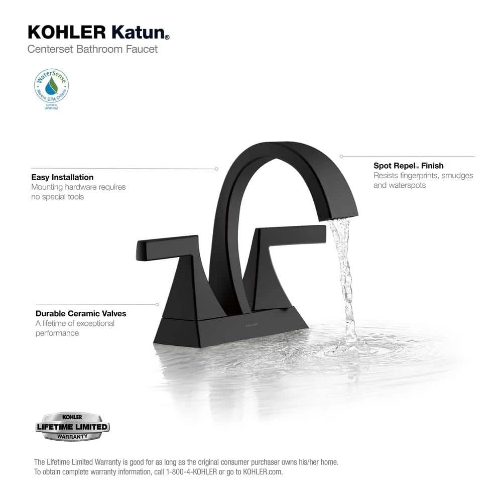 Featuring a unique ribbon water flow, this Katun center set faucet adds an element of surprise to your bathroom. Its striking lines and carefully crafted geometry exude timeless sophistication. Katuns streamlined look is easy to clean and its finish resists corrosion and wear.