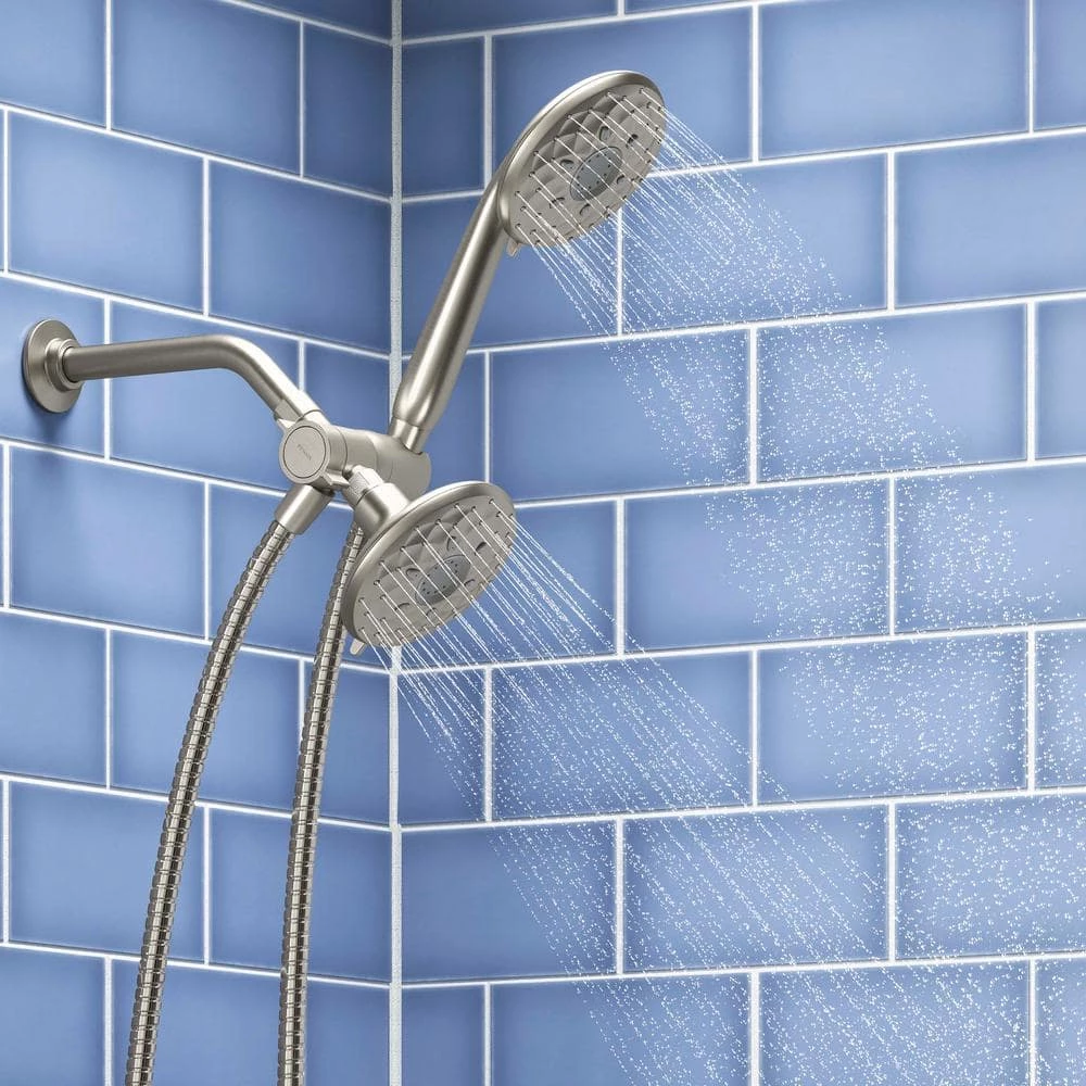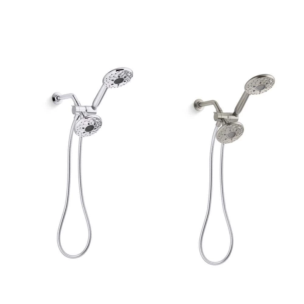 Twice the spray coverage, triple the spray choices. Create your own custom showering experience with this multifunction combo shower kit. This shower head and handheld shower head duo offers so many unique sprays, you are bound to find your perfect combination. An ergonomic thumb tab lets you transition between sprays with easy one-finger control. The kit comes complete with 72 in. metal shower hose and diverter/cradle to simplify installation.