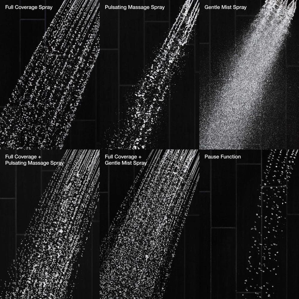 - Advanced spray engine provides six alternate experiences: full coverage, intense rinse, and powerful massage, two combination sprays, and pause feature