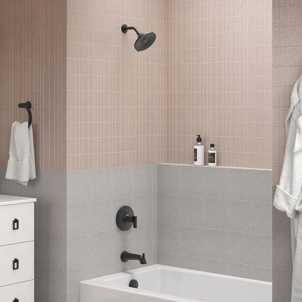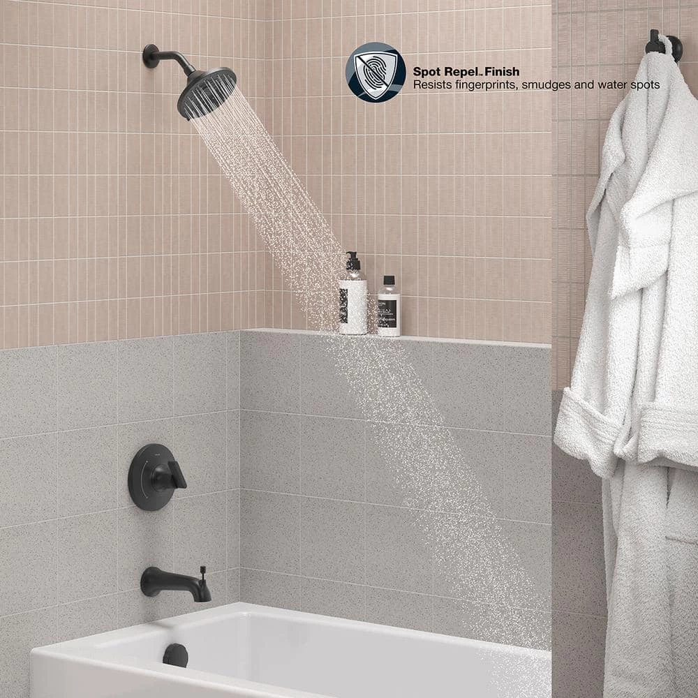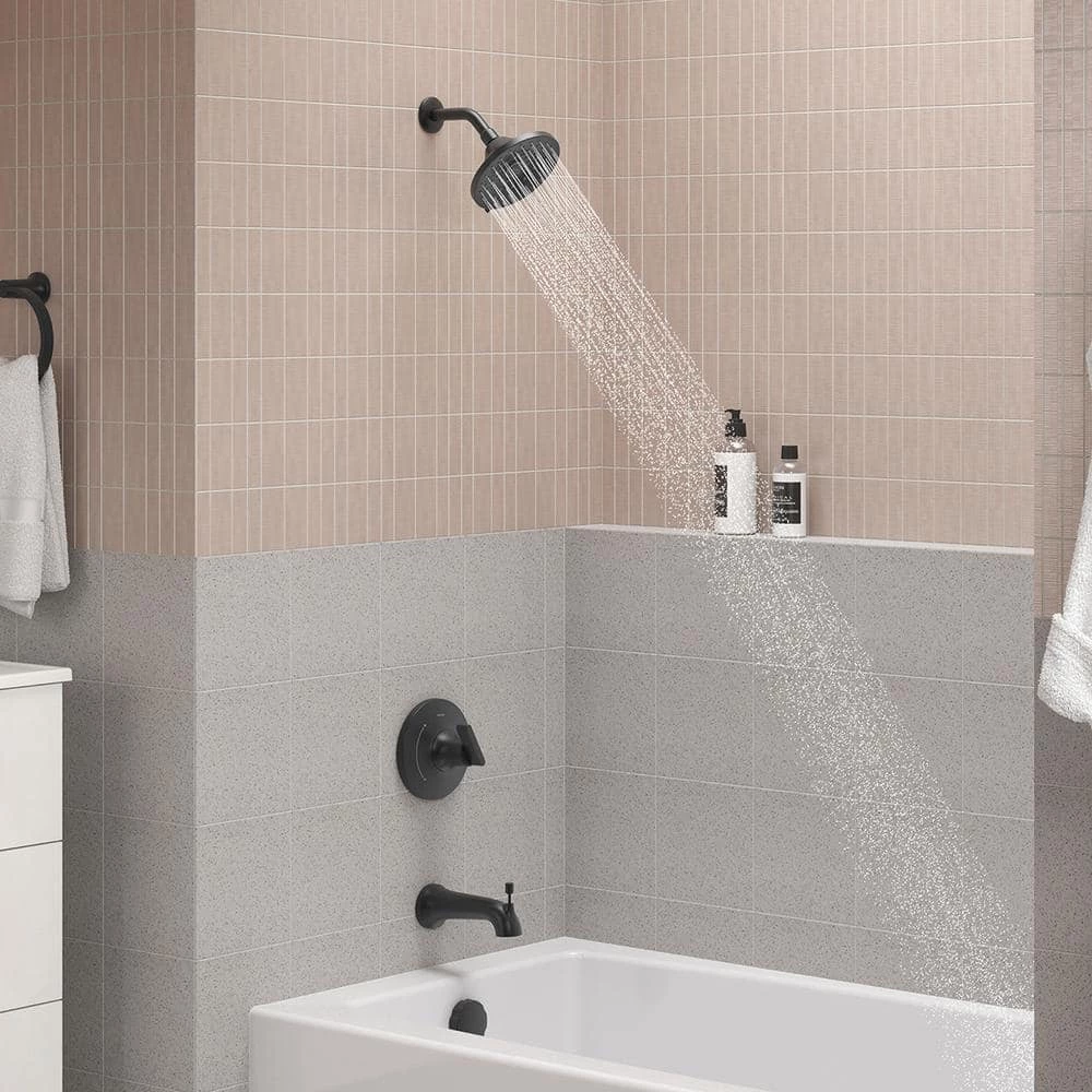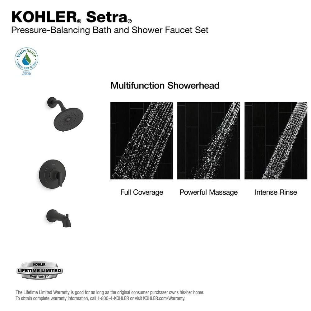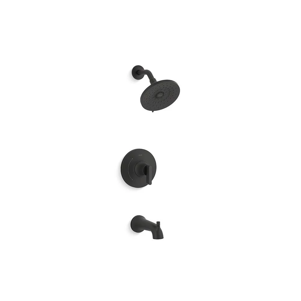 KOHLER Rite-Temp bath and shower faucet set has a sleek aesthetic that blends seamlessly into nearly any bathroom decor. This bath and shower set includes a multifunction showerhead, Rite-Temp pressure-balancing valve, single-handle valve trim, pressure-balancing valve, and bath spout. This product is backed by our lifetime limited warranty.