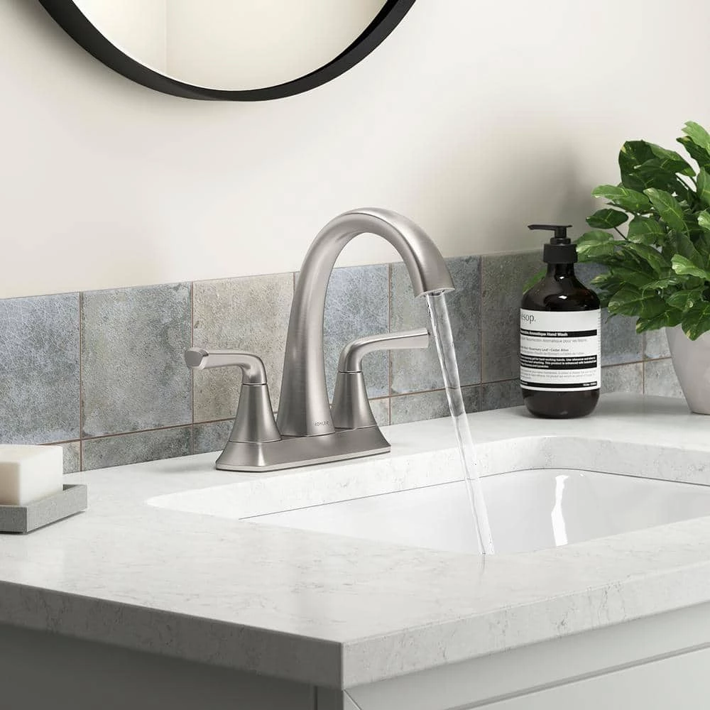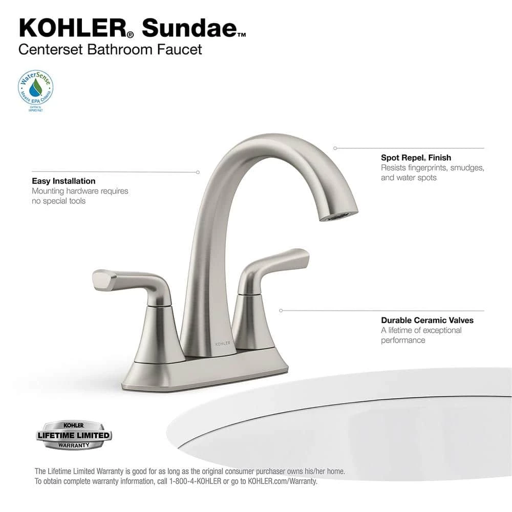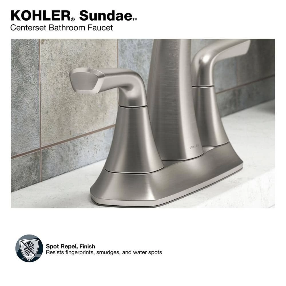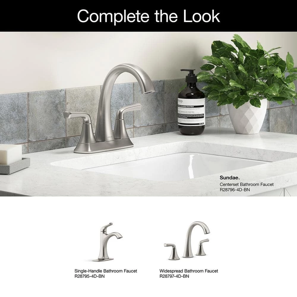 Sundae Centerset bathroom sink faucet has a casually chic style that combines facets, thoughtful intersections, and calm, elongated curves for a refined, classical look. The faucet handles allow for smooth operation while the ceramic valves offer a leak-free and drip-free experience. It’s designed for easy installation and features premium materials for a lifetime of reliable performance.