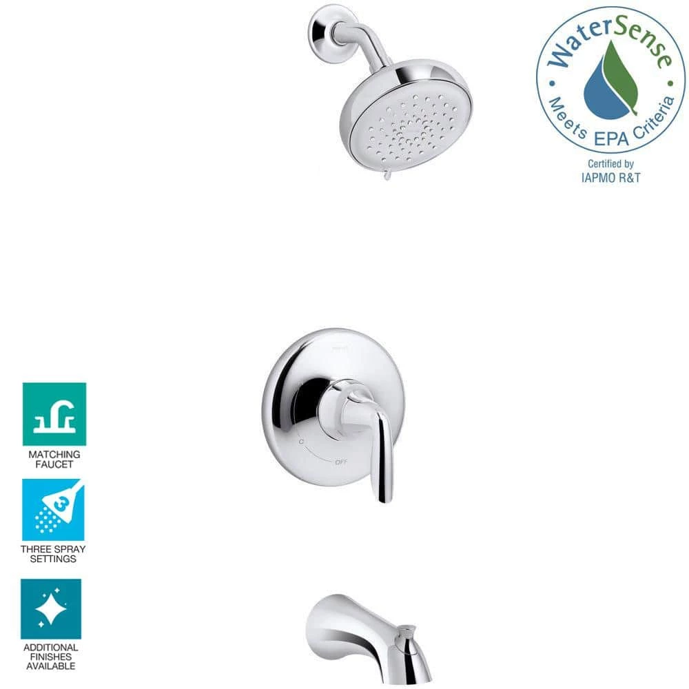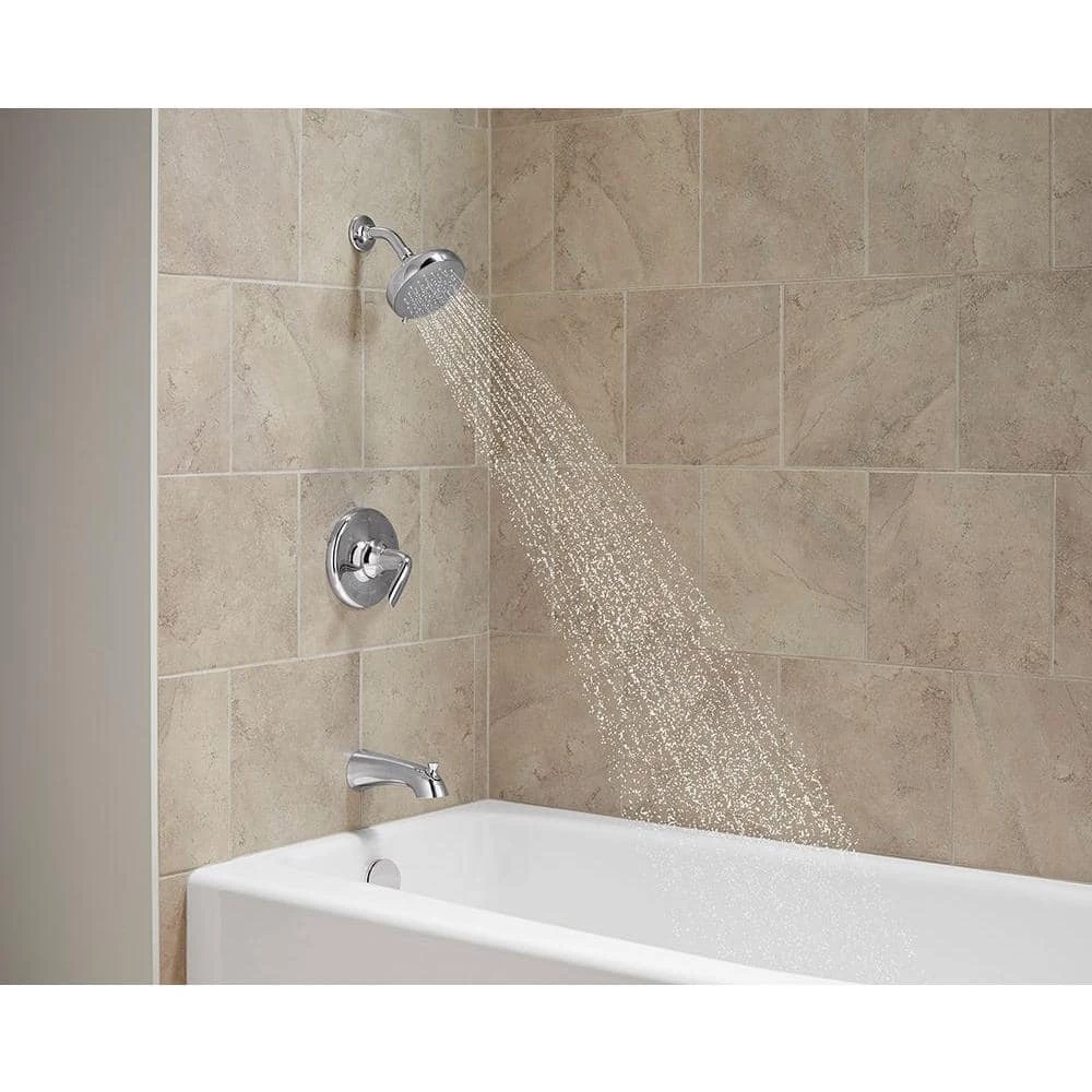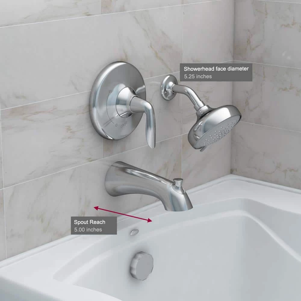 - Includes rite-temp pressure-balancing valve, lever handle, showerhead, shower arm and flange and bath spout
