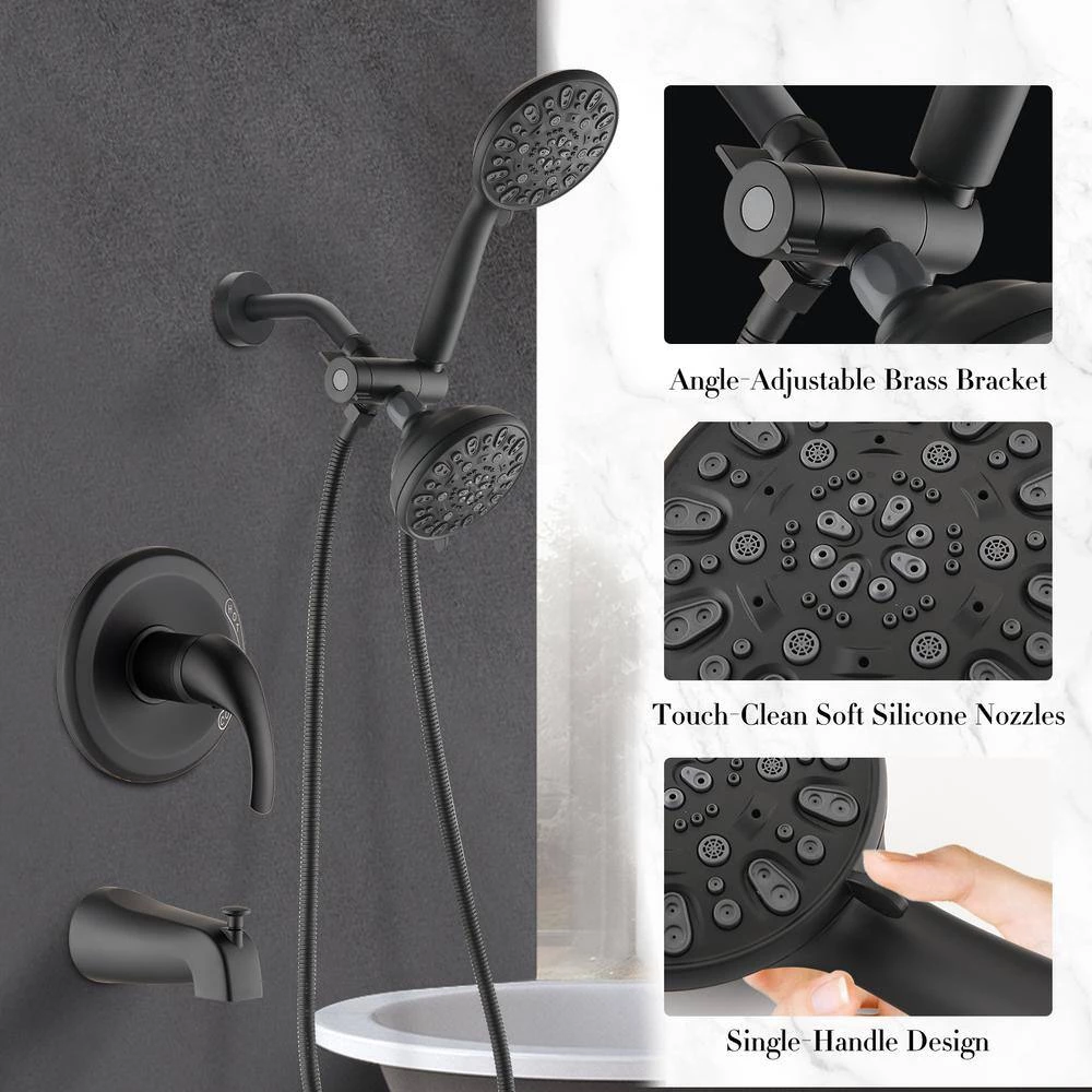 For manual water change, you can switch the water mode (top nozzle and manual shower head) by manually rotating the shower surface. The soft silicone nozzle is easy to clean and can remove calcification with your fingers. Rotate the top nozzle to the hand-held nozzle and easily adjust the shower mode through the rotary switch (rainfall or hand-held shower), which brings you a unique rainfall experience. When the shower handle is turned on, the bathtub nozzle will discharge water by default. If you lift the switch, the top sprinkler will drain automatically. When the supply pressure of cold water or hot water changes suddenly, the pressure balance valve of our shower system can automatically stop water outlet to avoid scalding accidents. Drip free performance the valve core can withstand many strict drip free operation tests. Easily adjust the shower mode by turning the switch (rain shower or hand-held shower).