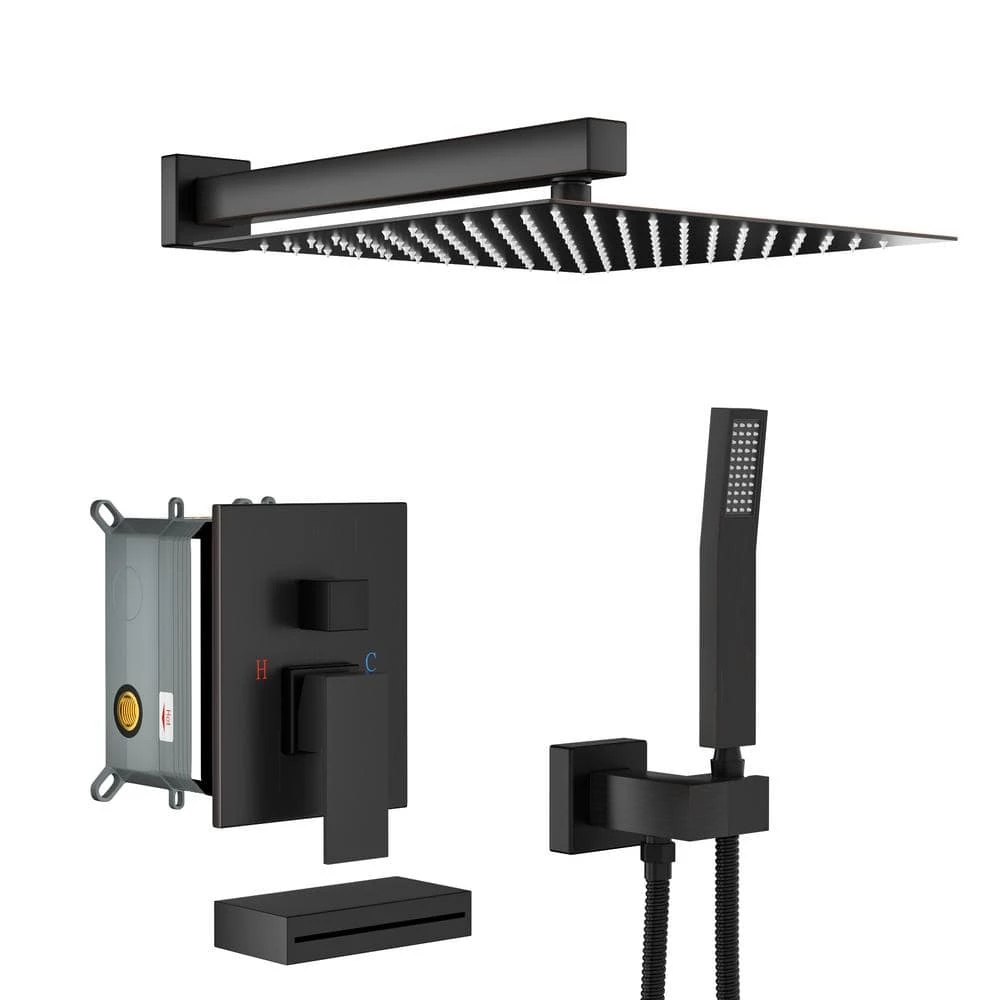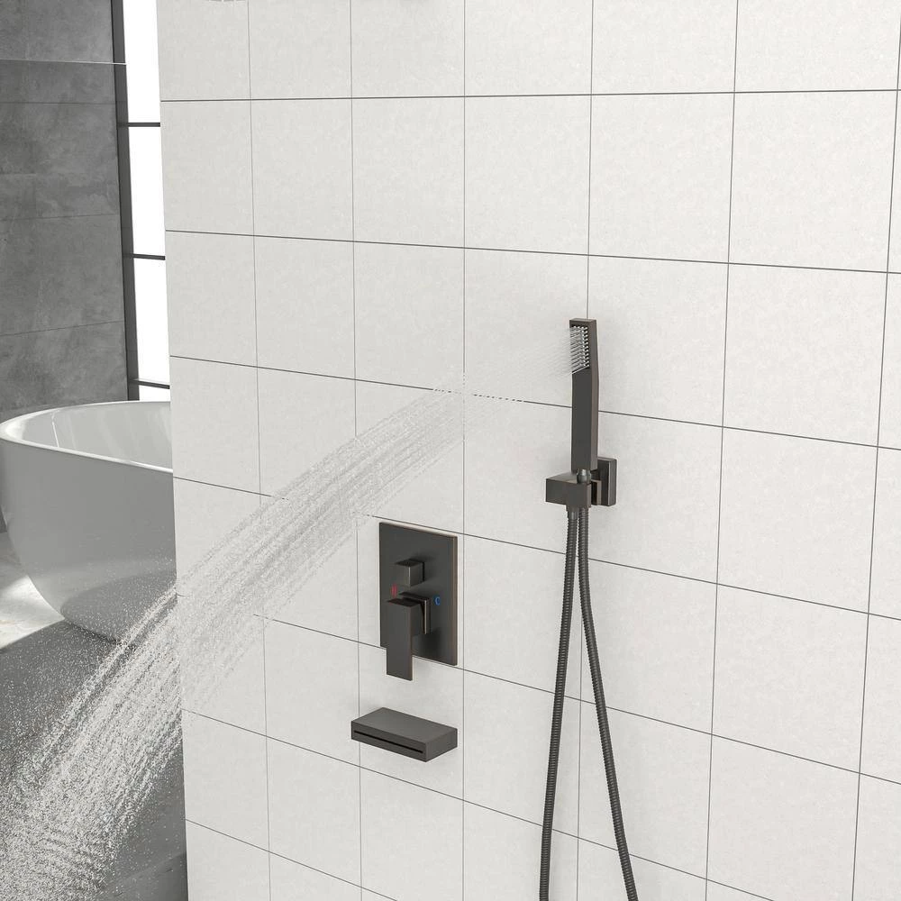 - Brass shower vertical arm: total length of shower arm with flange is 8 in. constructed from brass to provide exceptional durability, waterfall tub spout shower faucet offers more bath enjoyment