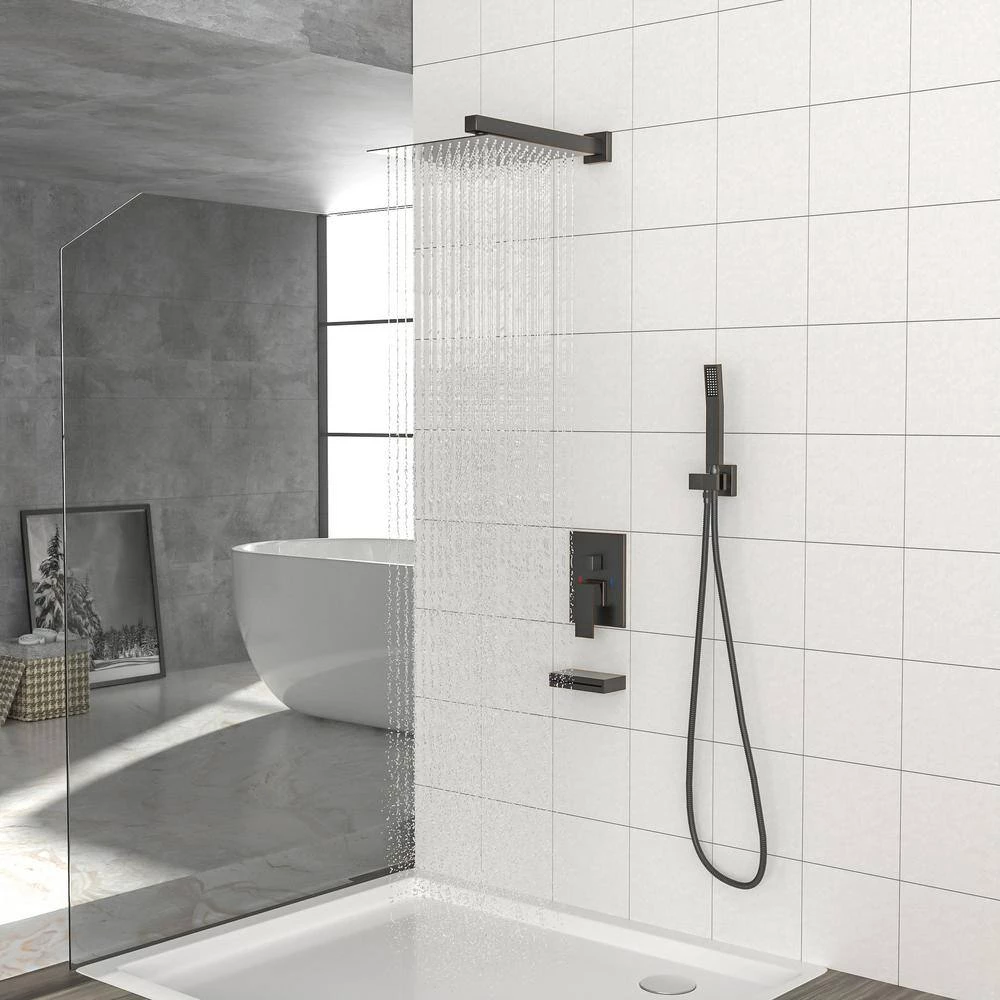 - 12 in. shower head: the shower head’s swivel ball allows you to adjust the spray angle of the showerhead after installation, providing a perfect shower experience for every family member, 59 in. shower hose with hand shower meet all your bathing needs