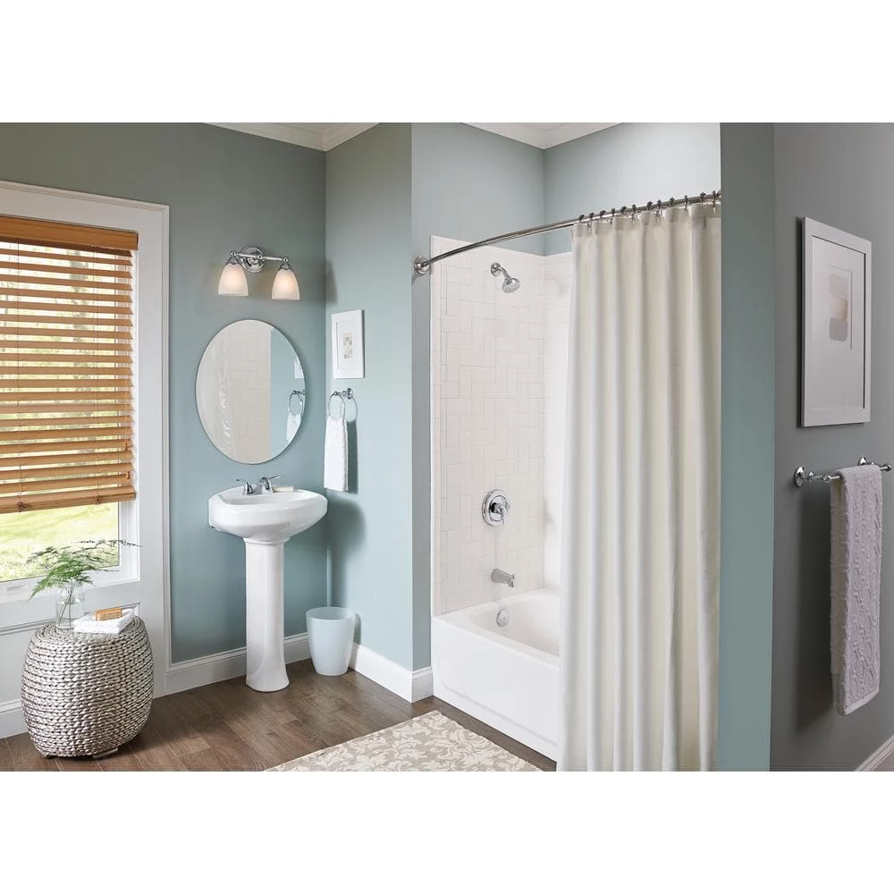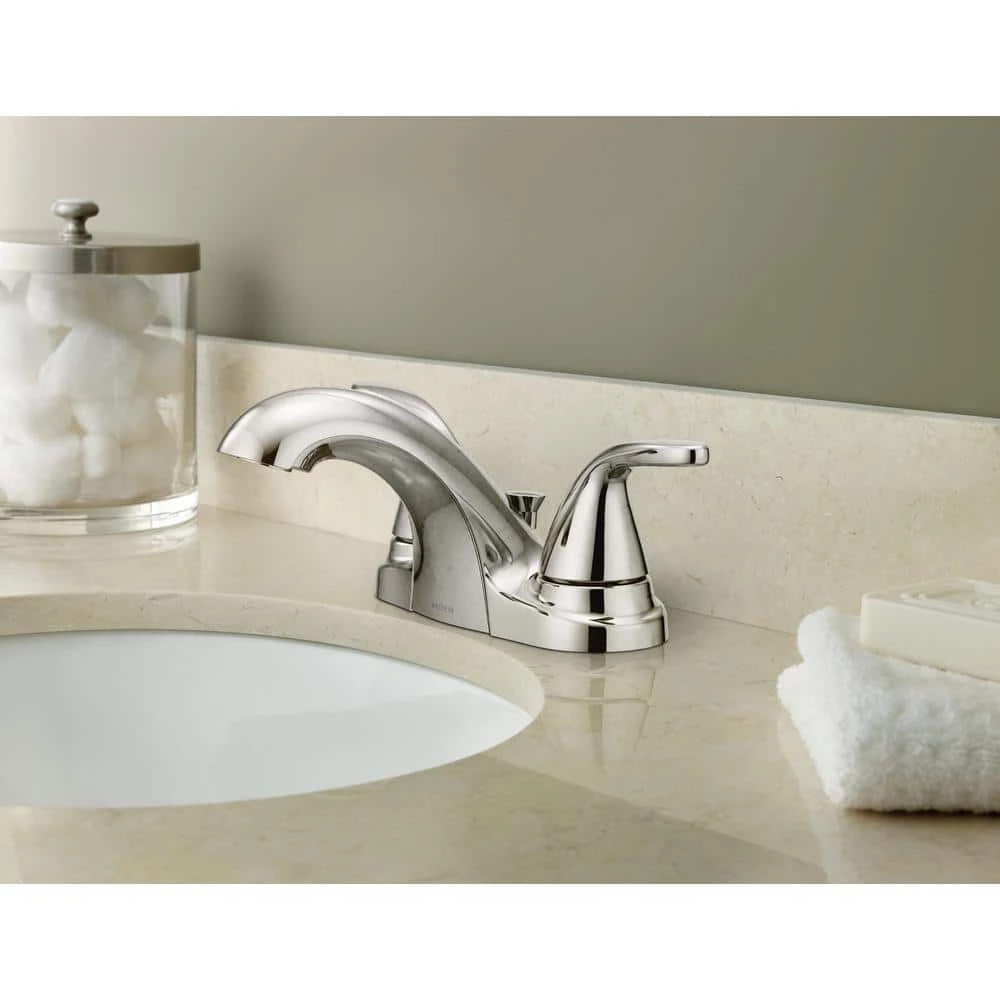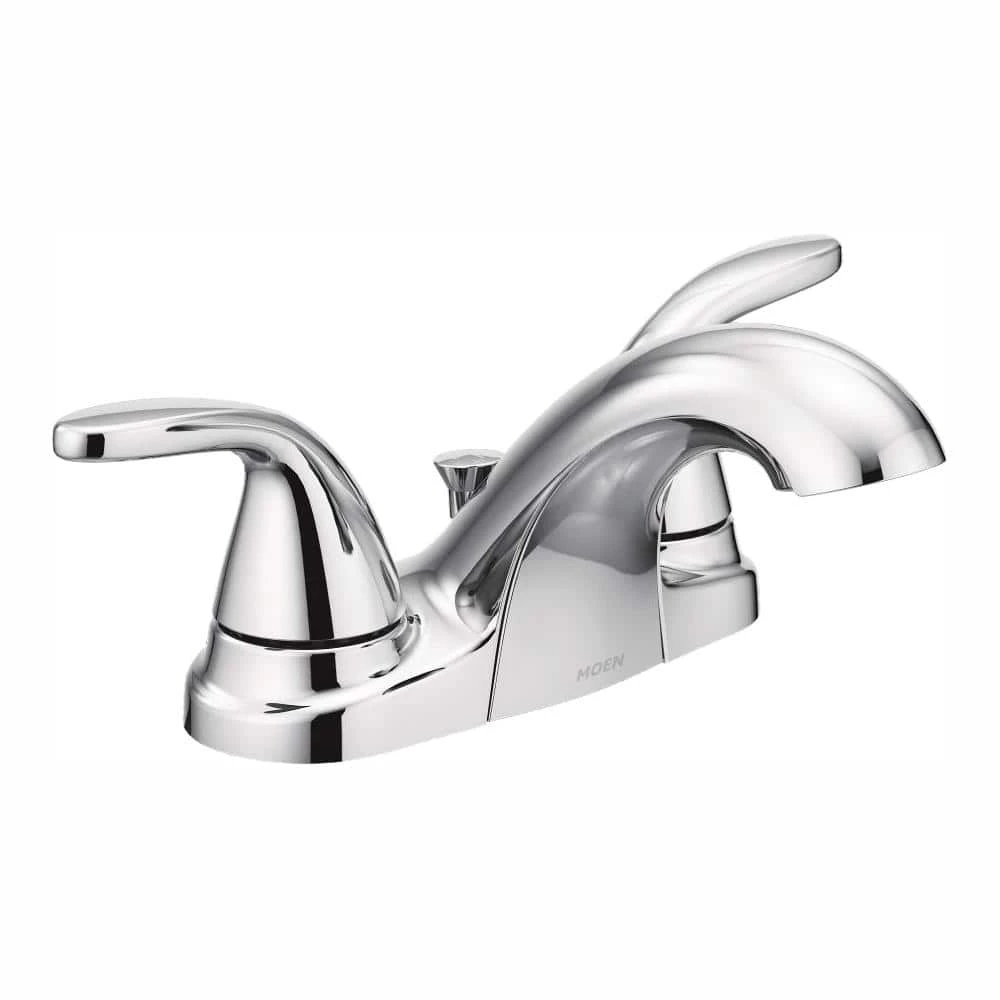 Simple and elegant, the Adler 2-Handle Low-Arc Bathroom Faucet from MOEN comes in a sleek-looking chrome finish that is easy to clean. The 1.2 GPM flow rate helps conserve water, producing a WaterSense certified design for sustainable use. The deck plate mount and 1/2 in. connection make the faucet easy to install, while the 2-handle style offers an ADA compliant design that is both durable and easy to use.
