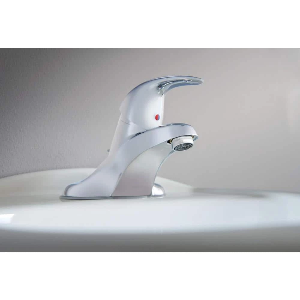 The MOEN Adler 4 in. Centerset 1-Handle Low-Arc Bathroom Faucet will serve as the perfect stylish addition to your home. Featuring a polished chrome finish that offers a mirror-like, highly-reflective shine that complements a wide range of bath decor styles, this versatile faucet includes both a lever handle and a knob handle option, so you can choose whichever is most convenient for you. It was designed to meet WaterSense criteria, conserving water while maintaining peak performance.
