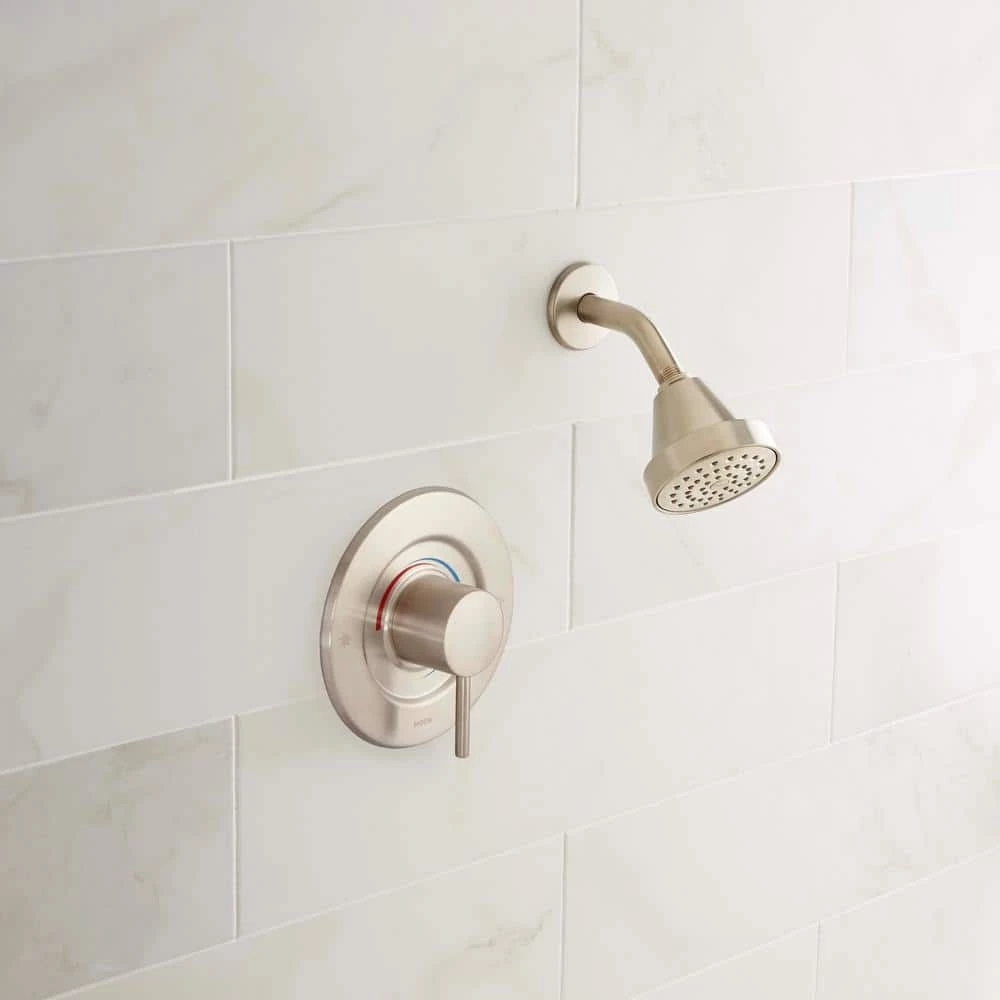 - PosiTemp pressure-balancing control valve keeps water temperature steady for consistently satisfying shower experiences