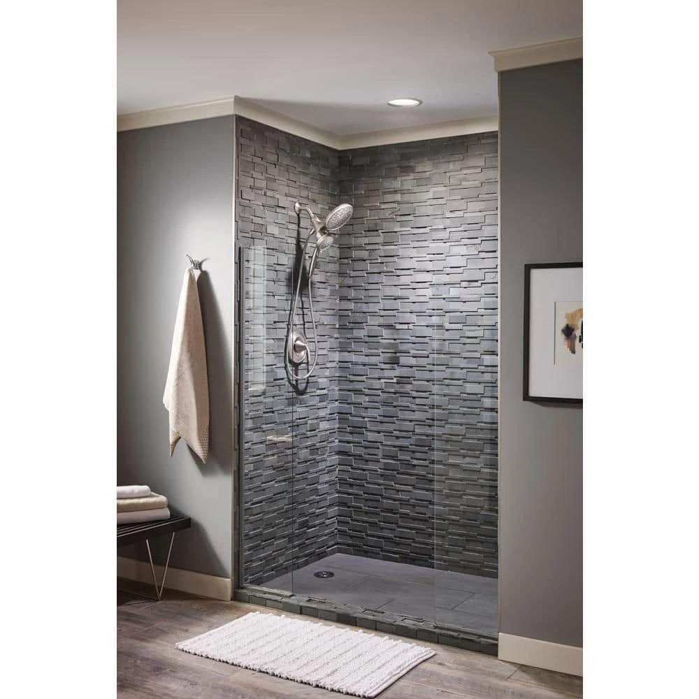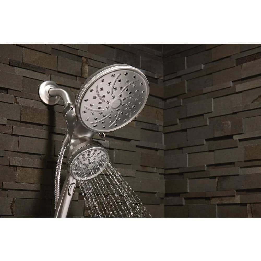 The Magnetix Hand shower and rain shower combo is a snap to use. This innovation offers easy release and return, even with your eyes closed. The Spot Resist brushed nickel finish resists fingerprints and water spots for a cleaner looking bath.