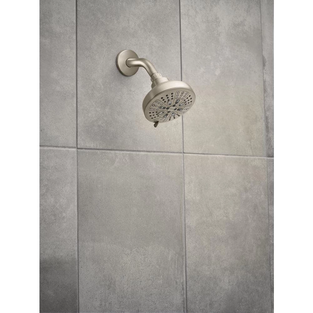 The HydroEnergetix collection offers an array of spray settings that offers an awakening showering experience. Gracious and uncomplicated style features give the HydroEnergetix collection an ageless yet fashion-forward presence. Tailored yet relaxed, the HydroEnergetix collection is an exercise in design balance. This lustrous collection works seamlessly with today’s lifestyles, providing you style and on-demand water flexibility to enhance your showering experience. The 5 in. round spray face, modern in its design, also provides a generous full spray. The HydroEnergetix 8-spray handheld shower is also EPA WaterSense certified to conserve water without sacrificing performance. The spot Resist Brushed Nickel finish resists fingerprints and water spots to maintain the fixtures brilliance.