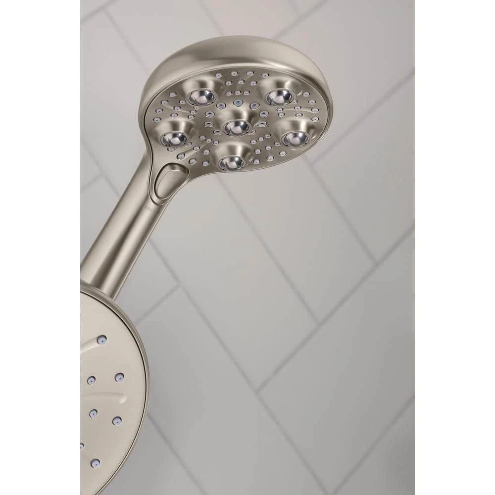 Innovative and relaxing hydro-therapy can be located right in your shower. Equipped with 6 metal massaging rolling balls in the spray face, the handheld showerhead can soothe sore and tired muscles, combined with 3 soothing water spray settings to relax and invigorate. The handheld shower also has a 72 in. kink-free, flexible metal hose for expanded reach to target any area of your body. This specialized and unique handheld is also accompanied by a wide coverage rainshower showerhead for an immersive showering experience. And with the Spot Resist finish, don’t worry about stubborn water marks, soap scum or fingerprints left on your showerhead; MOEN’s Spot Resist finish resists these pesky marks, for a cleaner looking bathroom.