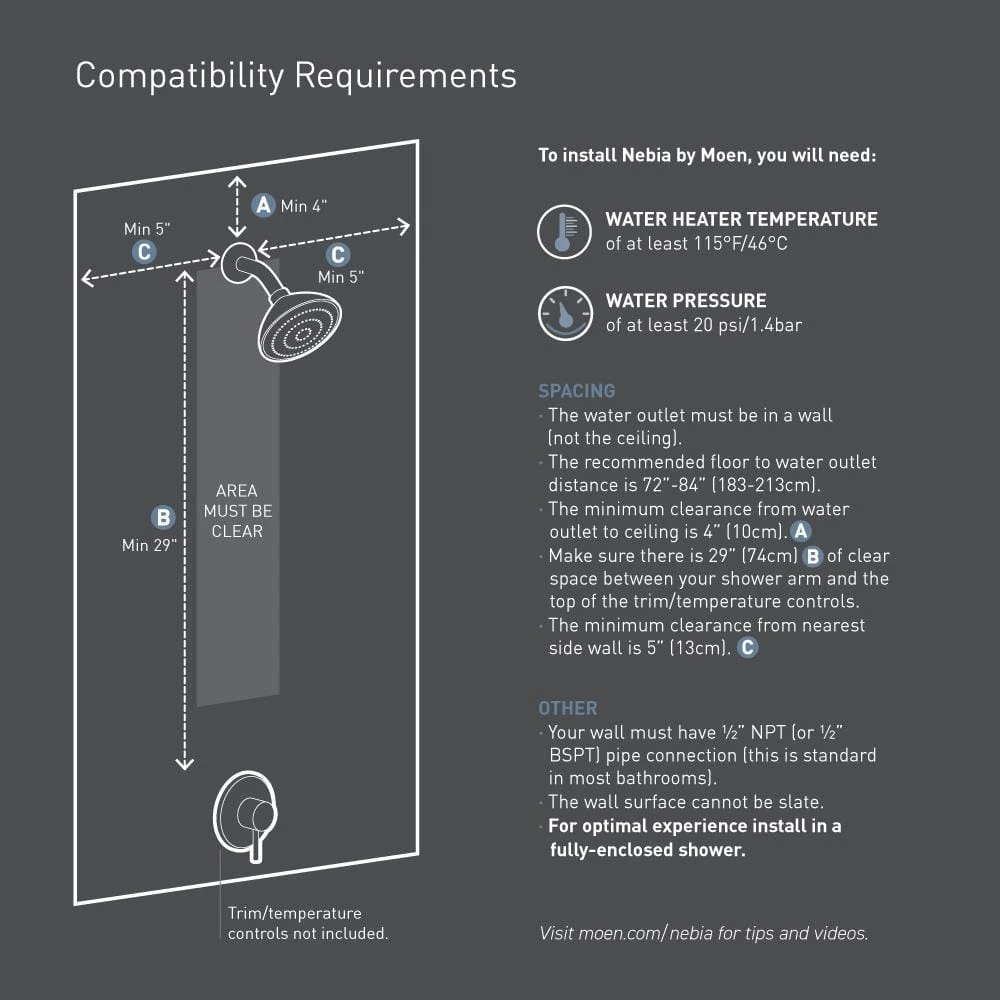 - For optimal experience, Nebia by Moen should be installed in a fully-enclosed shower