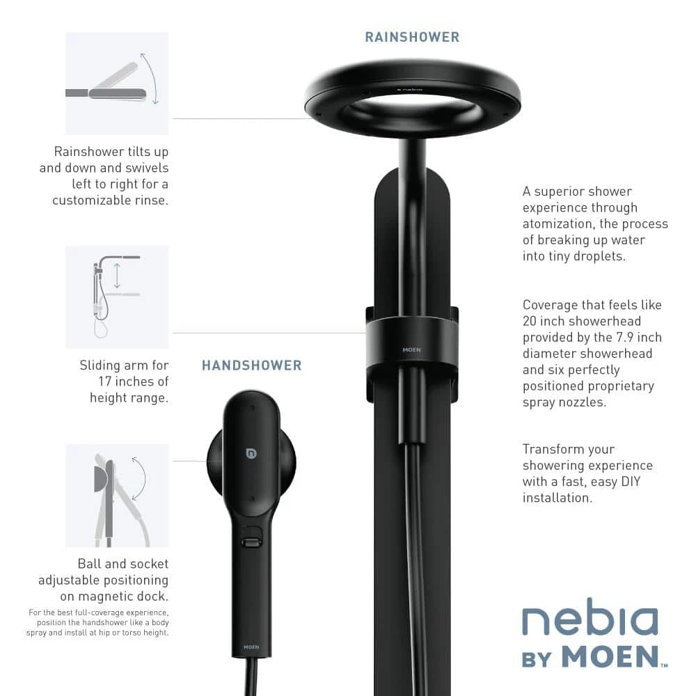 - Nebia by Moen is a better experience, with a spa shower delivering up to 45% water savings